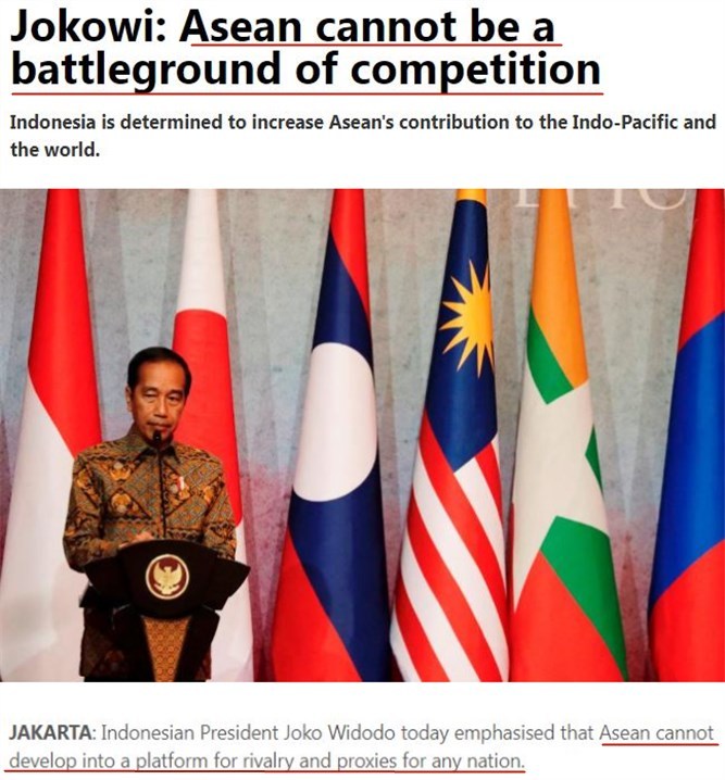 作为东盟轮值主席国,印尼总统和外长密集发声,反映了东盟国家期待和平团结的共同心声。而当下,本地区稳定与繁荣的最大挑战和威胁,来自美西方。美西方打着所谓的“价值观外交”的旗号,在东亚地区搞“小院高墙”。这些做法实际上都是对地区的威胁,直接破坏了以东盟为中心的地区安全架构。