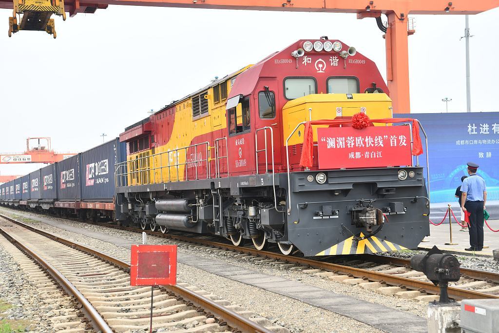 △7月7日,搭载着泰国汽车零配件的“澜湄蓉欧快线”从位于成都市青白江区的成都国际铁路港首发。该趟班列由泰国罗勇始发,经中老铁路,由老挝万象至成都国际铁路港,接续中欧班列发往欧洲,将于7月17日抵达目的地匈牙利布达佩斯,实现中老铁路与中欧班列的联线贯通。(图自视觉中国)