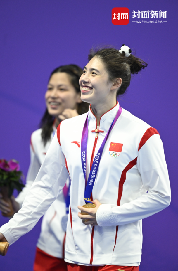 有意思的是,在今日赛后颁奖仪式上,张雨霏头戴参加成都大运会时的同款大熊猫头饰站上领奖台,笑逐颜开。