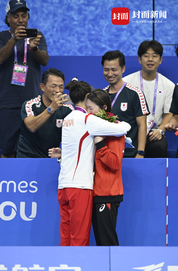 这一幕也让现场的教练和观众感动,纷纷给他们送上鼓励的掌声,为选手们之间的友谊致敬。这一幕,充分诠释了亚运赛场上不仅有成绩的争夺,更有着团结友爱的体育精神。