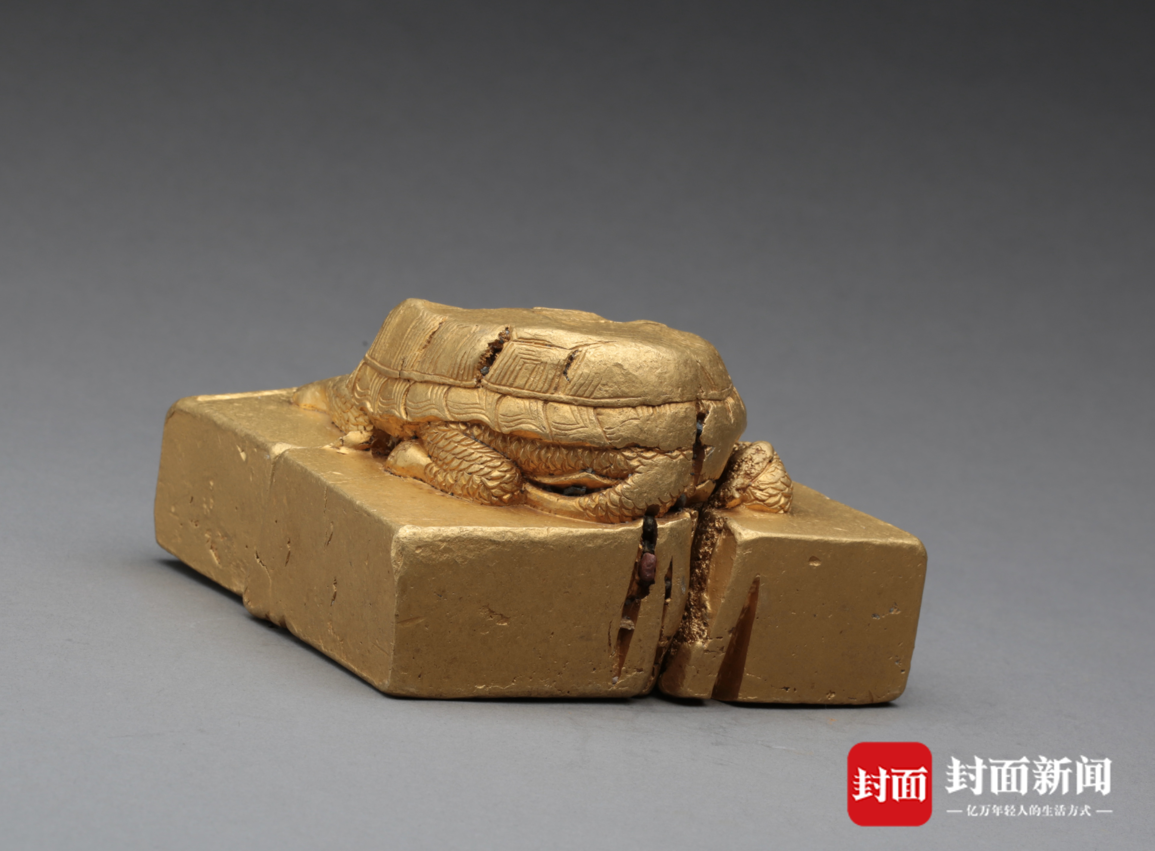 在一万余件出水文物中,最为耀眼的是一枚金印。方形印台、龟形印钮,印面上铸着“蜀世子宝”四字。印台边长10厘米,厚3厘米,含金量高达95%。“蜀”字证明这枚金印原为明蜀王府之物,“世子”为亲王嫡长子。