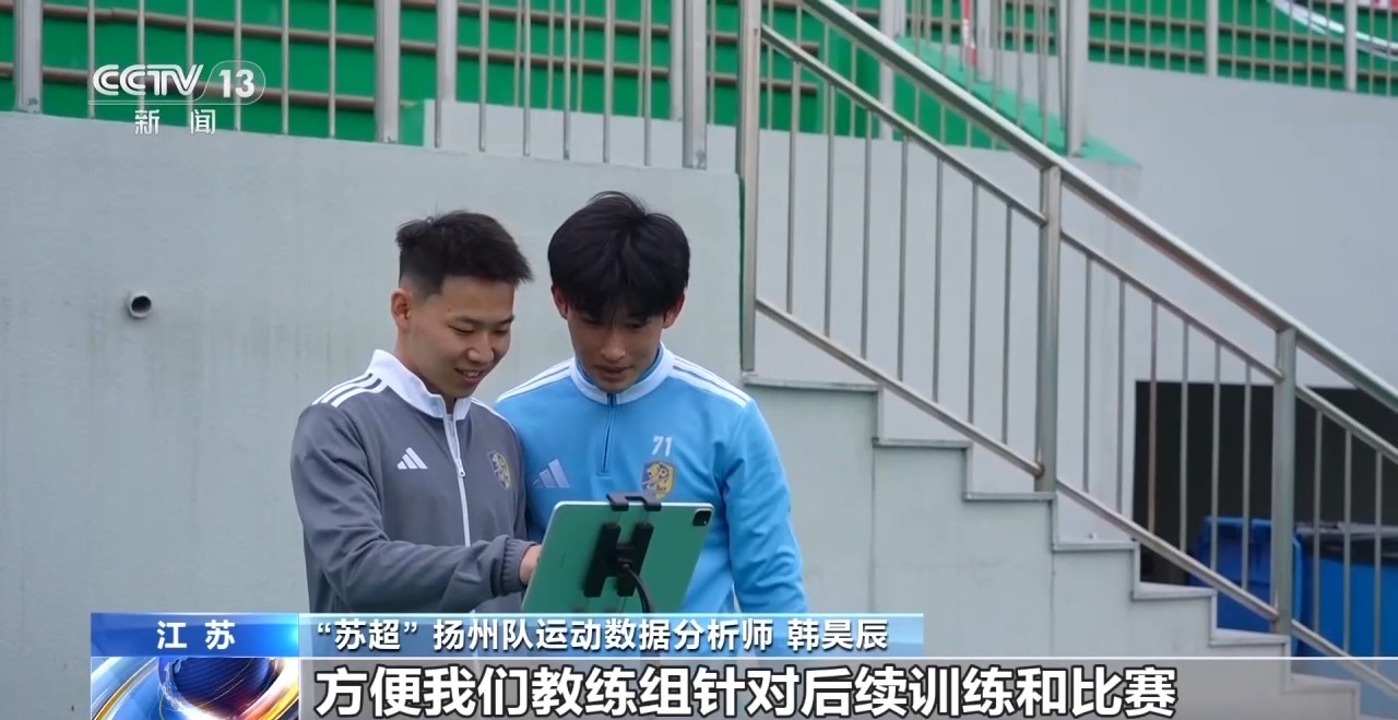“苏超”扬州队运动数据分析师 韩昊辰:周期性帮我们了解球员的身体状态,方便教练组针对后续训练和比赛进行阵容安排和战术调整,同样也减少球员的伤病风险。