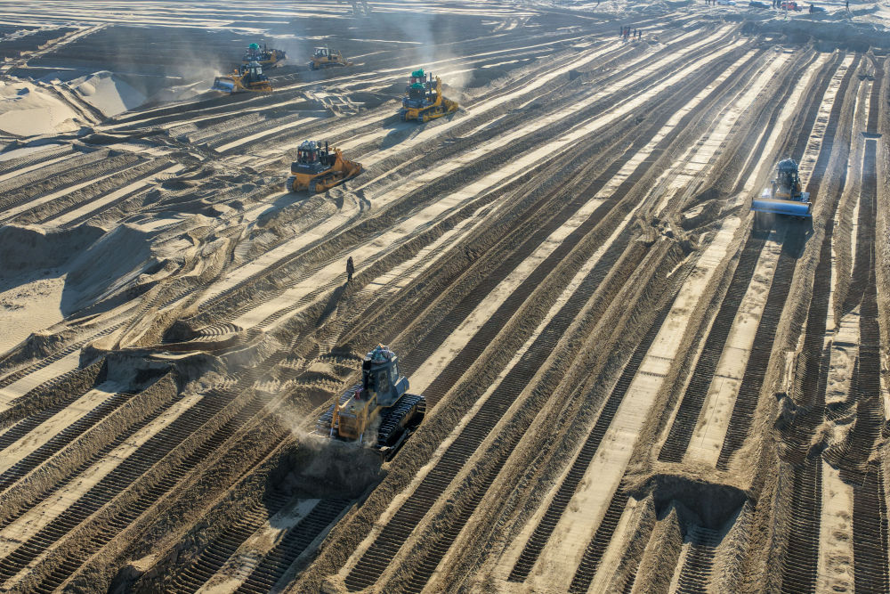 冬季的沙漠进入“休眠期”,沙尘天气频率降至全年最低,沙丘移动速度趋于稳定,为大型机械平整沙地作业创造了稳定条件,也是从源头切断春季风沙蔓延路径的关键窗口期。