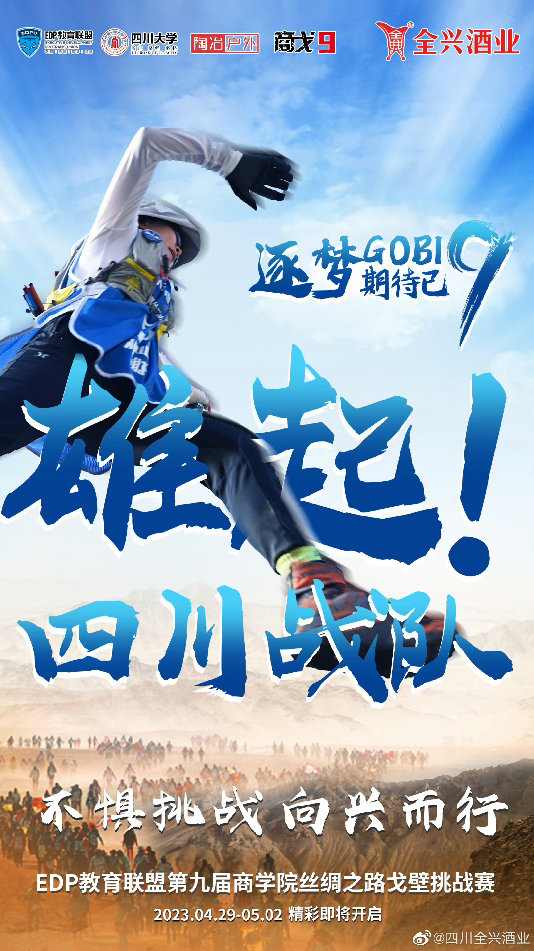 据悉,全兴品牌继此前三年凭借“奔跑吧,全兴”和“并肩奔跑 全兴+”活动,足迹已遍布全国20余个省市。今年,在“全兴+”生态的拓展下,全兴与四川大学商学院在戈壁挑战赛的深度合作,是以另一种形式延续奔跑精神,持续深化并丰富650年底蕴的“兴文化”,讲述与时俱进的品牌故事。