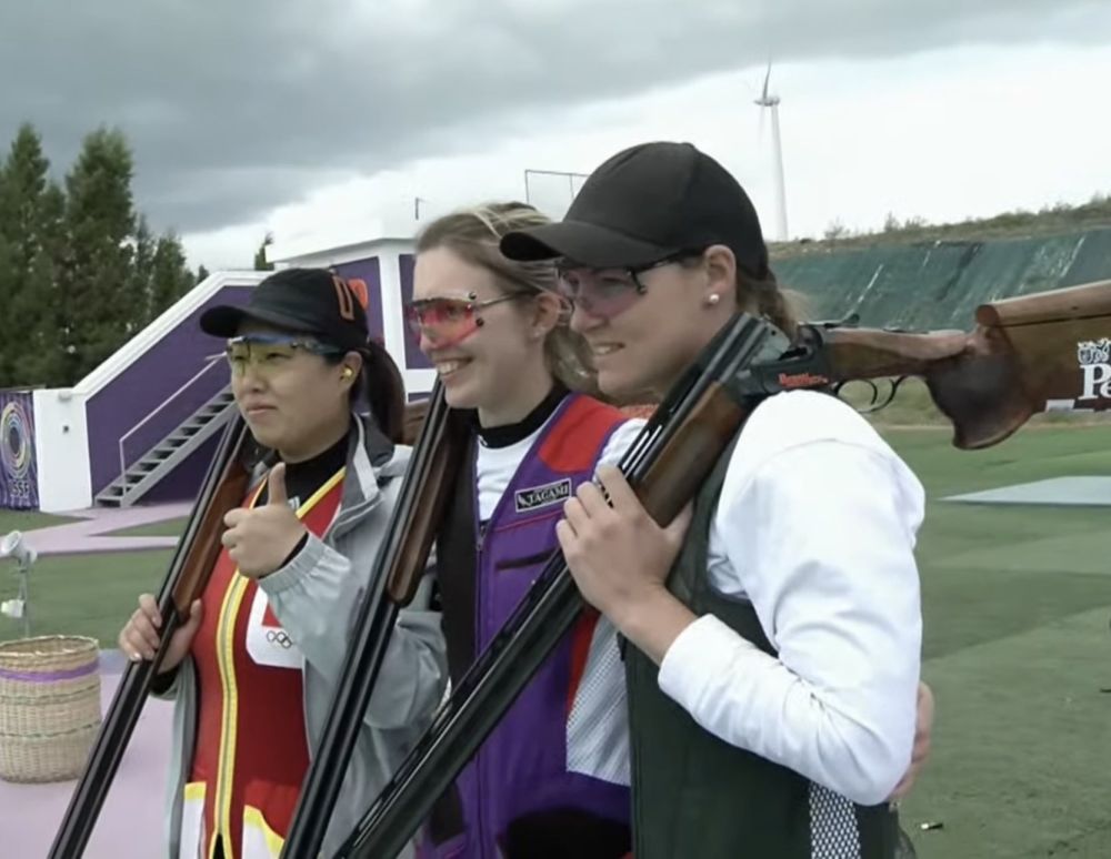 中国选手武翠翠(左)在比赛后。图片来自国际射联官方社交账号。