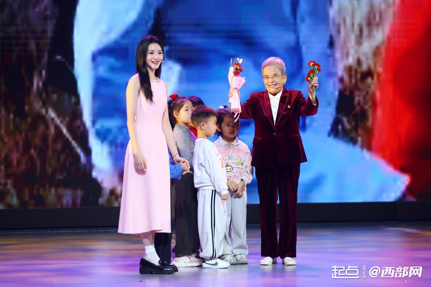 启动仪式现场,演员刘浩存牵着小朋友们为路生梅送上鲜花。