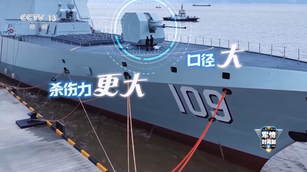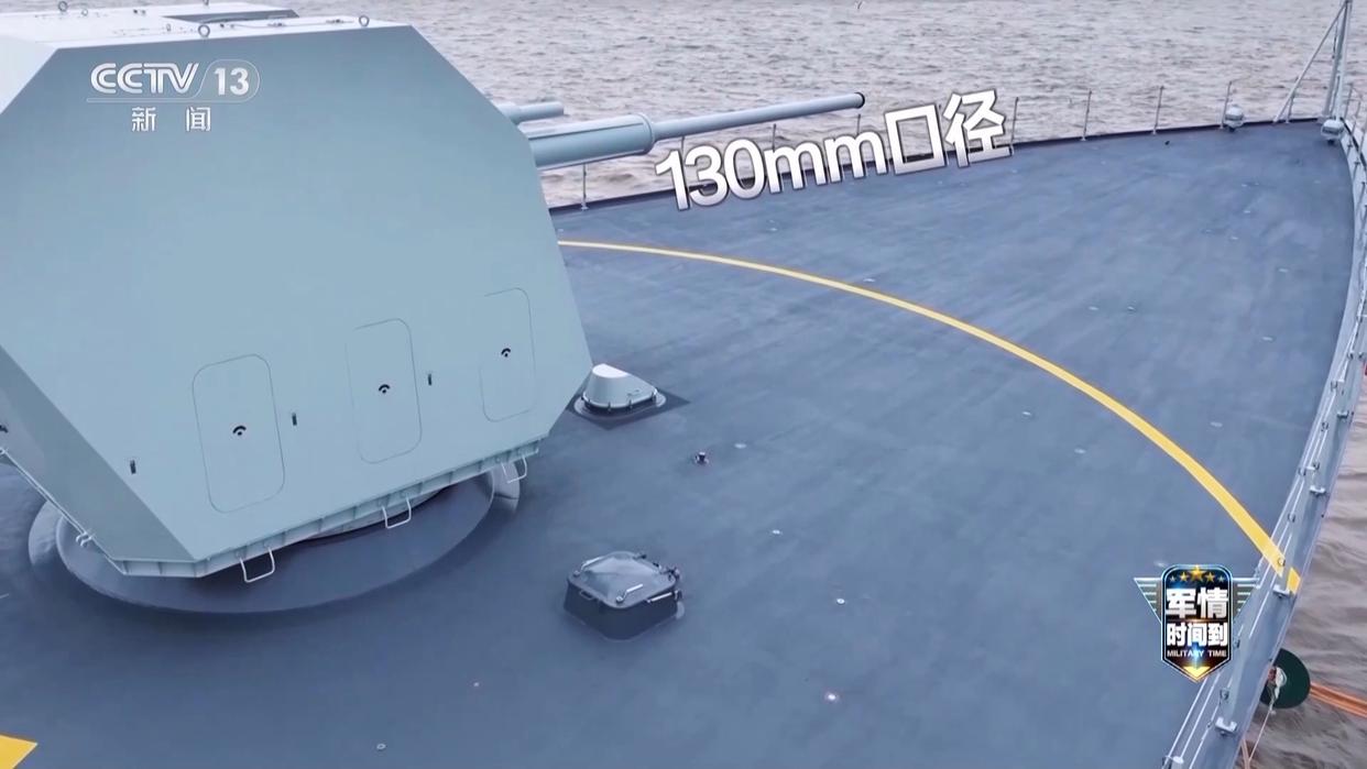 总台记者 李笑琪:这就是东莞舰的主炮了,可以看到整体比1米65的我还要高一些,像这样130毫米口径的主炮可以实现有效的毁伤打击。