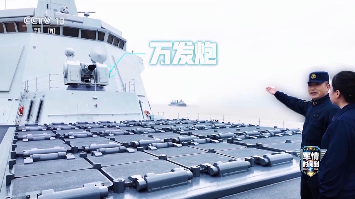 在上面,这就是大家熟悉的“万发炮”,它可是末端防御的“撒手锏”,它主要的特点是射速高,成本低,毁伤概率相当强,在空中形成“弹幕”,对来袭目标进行有效拦截。