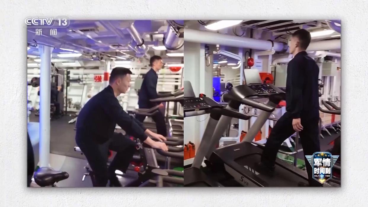 令人意想不到的是,东莞舰不但有大甲板、大机库,它还有个健身房,里面跑步机、动感单车、各种器械一应俱全,帮助官兵们在出远海时保持良好的体能状态。