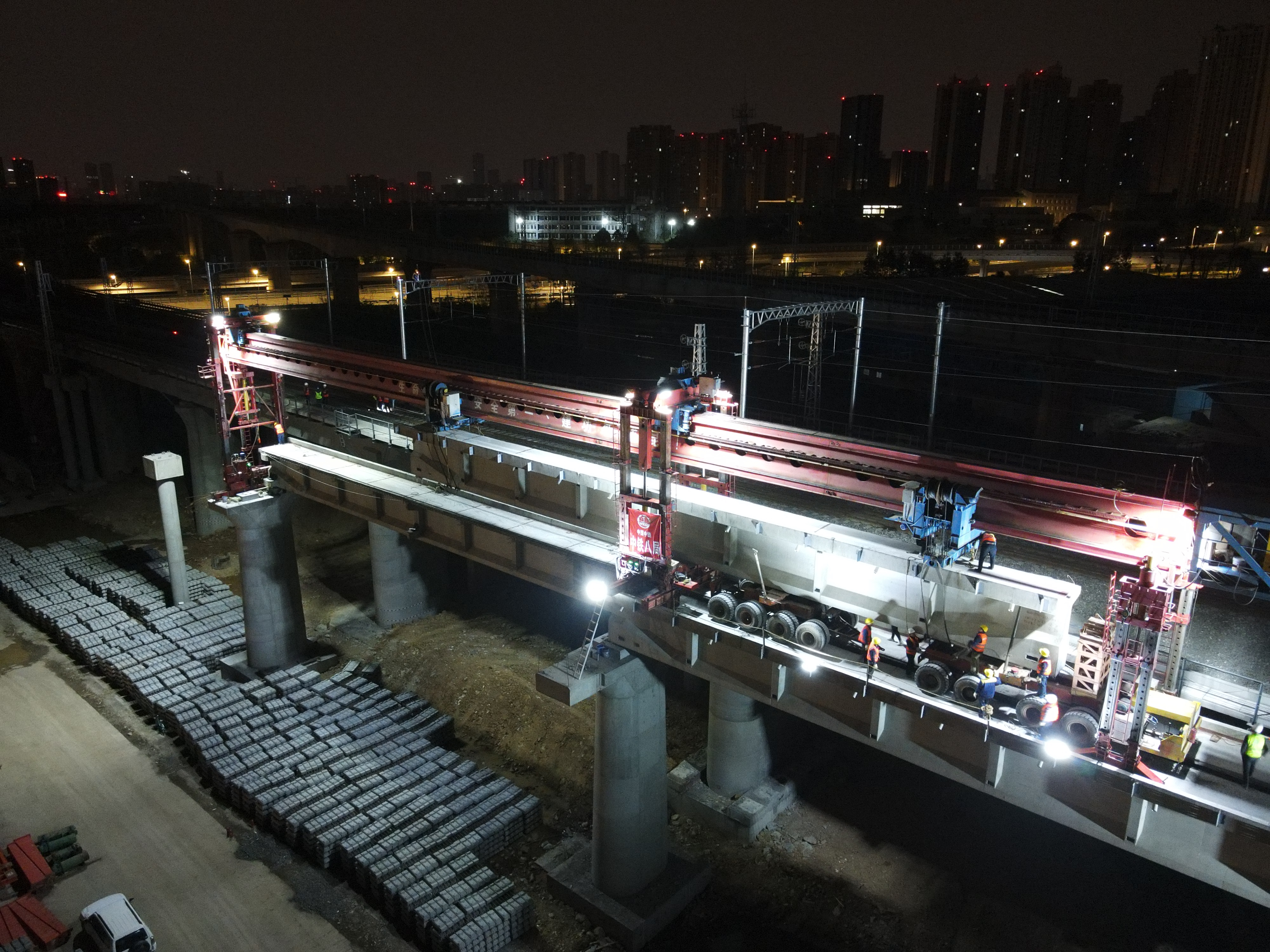 “桥梁邻近既有线,我们要利用夜间天窗时间作业,这是此次架梁施工最大的难点。”中铁八局成自二标项目经理岳春说。该局承担全线927孔箱梁和110榀T梁的架设任务,架设线路跨越麓山大道、成自泸高速公路、成都第二绕城高速公路等多个交通要道,多处涉及既有线施工,且沿线地质条件复杂,面临着环保要求高、施工难度大、运输距离长等困难。