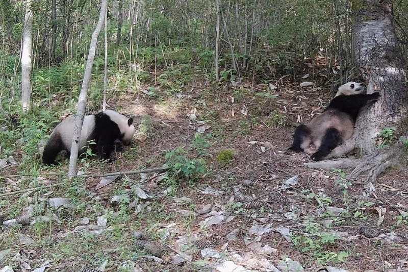 近日,陕西长青国家级自然保护区华阳管护站工作人员在回收的红外相机中发现了一组两只大熊猫同框活动的高清影像。经过比对分析,确认这是一对野生大熊猫母子。