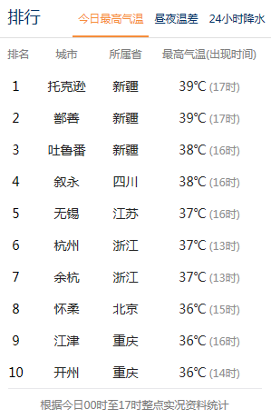 8月11日全国高温排行榜
