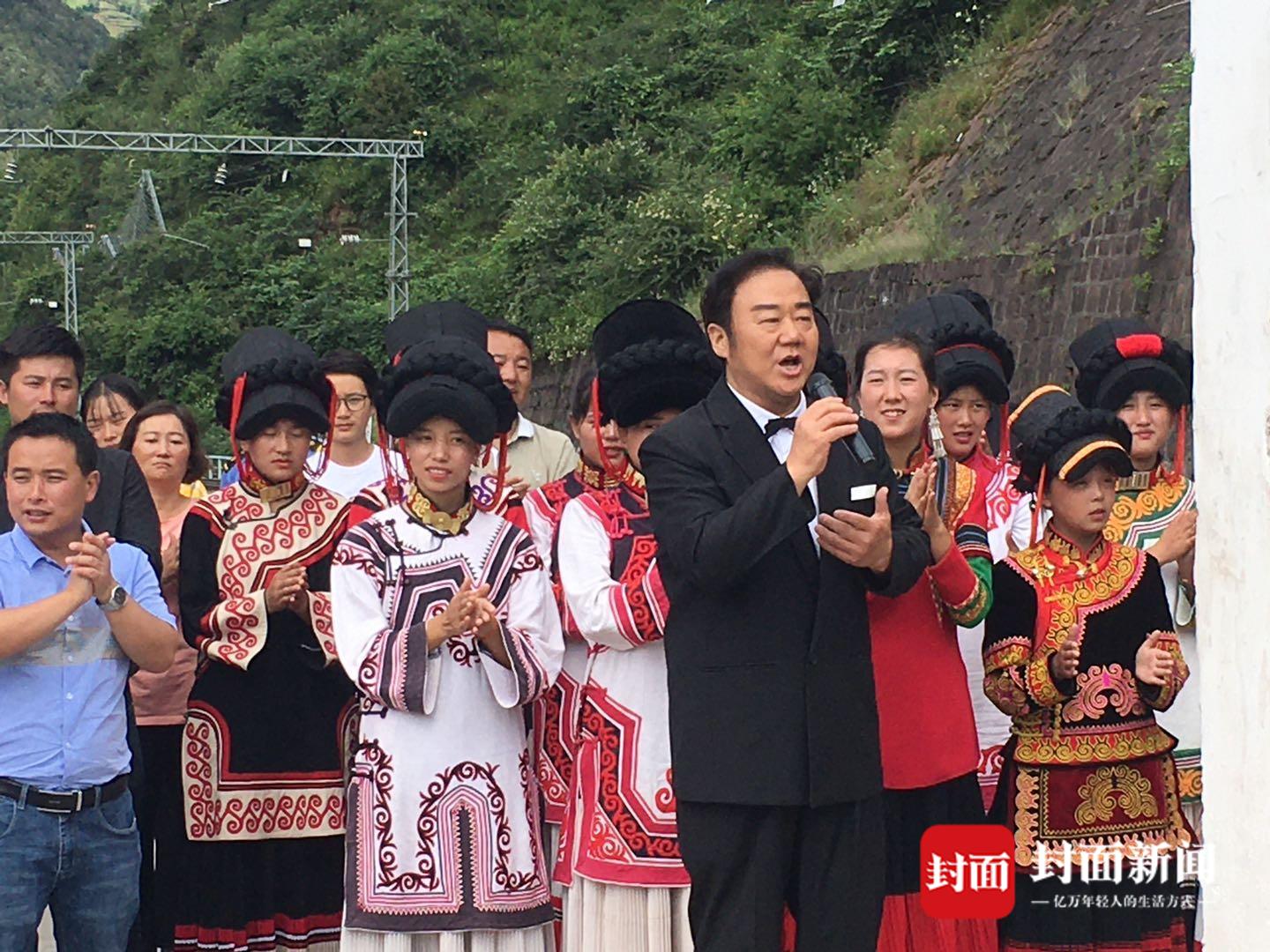 8月15日晚6时,封面新闻记者采访了刚刚结束慰问演出的歌唱家霍勇。他说:“这次参加央视‘心连心’艺术团赴喜德公益演出,收获很大。特别是在成昆铁路‘东方红’隧道口为铁路工人献歌,我很激动。祝铁路工人和彝族同胞,幸福吉祥!”