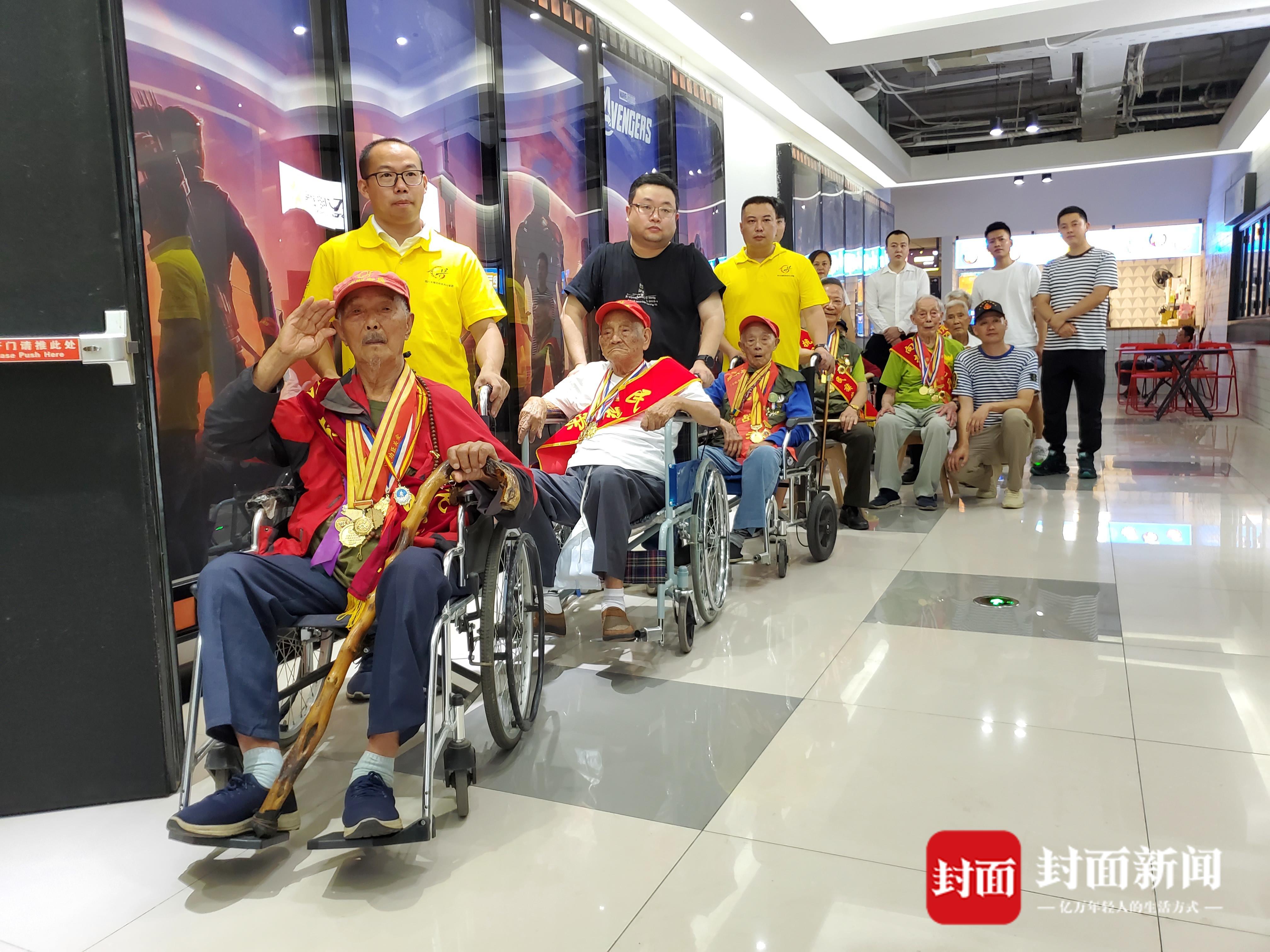 “守四行仓的事迹,以前在部队就听说过。”21日下午3点左右,武侯区一电影院内,八位年龄从92-102岁不等的老人坐在一排,等待即将开场的抗战电影《八佰》开幕。