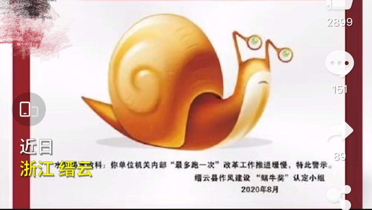 日前,浙江丽水缙云县就举办了这样一场别样的颁奖礼。两家因工作作风出现问题的单位,拿到了作风建设“蜗牛奖”。此事一经曝光,在网上引发广泛关注,不少网友对该县处罚举措点赞,认为应全国推广。