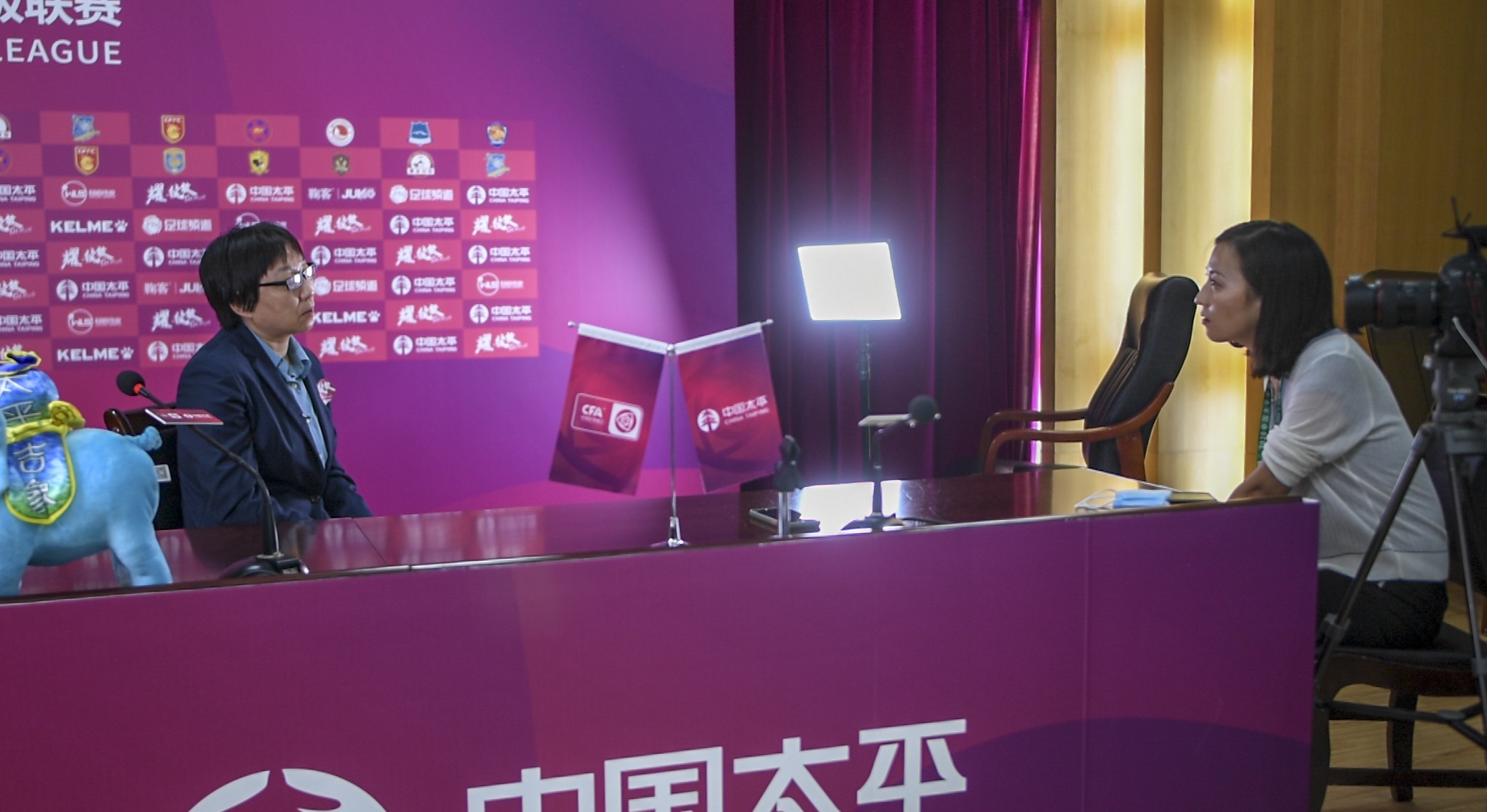 采访孙雯落座时,大家都自觉遵守了间隔一米以上距离的规定。作为中国足协成年女足联赛防疫工作领导小组副组长,孙雯说安全是赛事的前提基础,防疫这根弦时刻不能松。