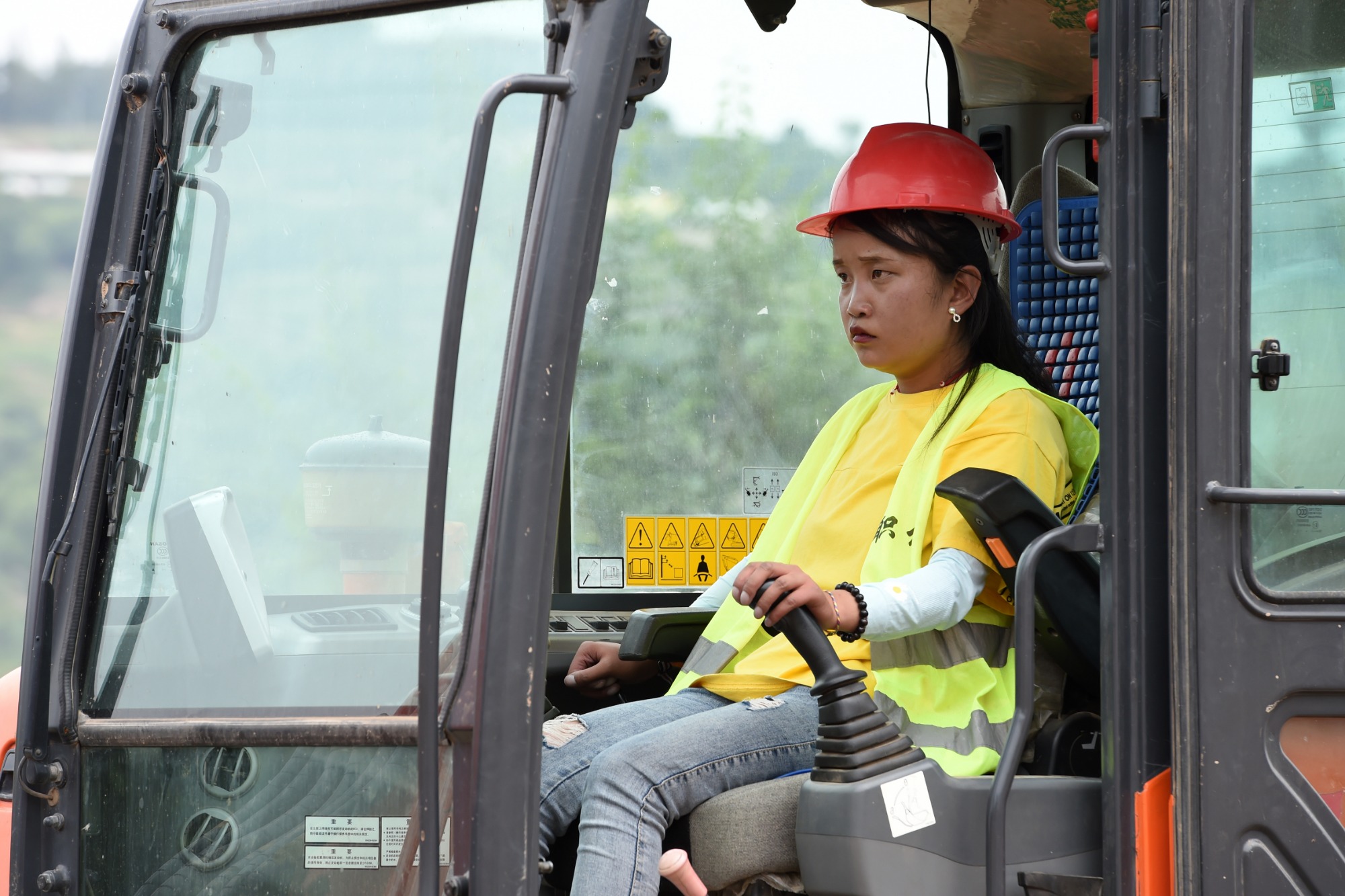 8月3日,韩琳琳在学习操作挖掘机。新华社记者 范培珅 摄