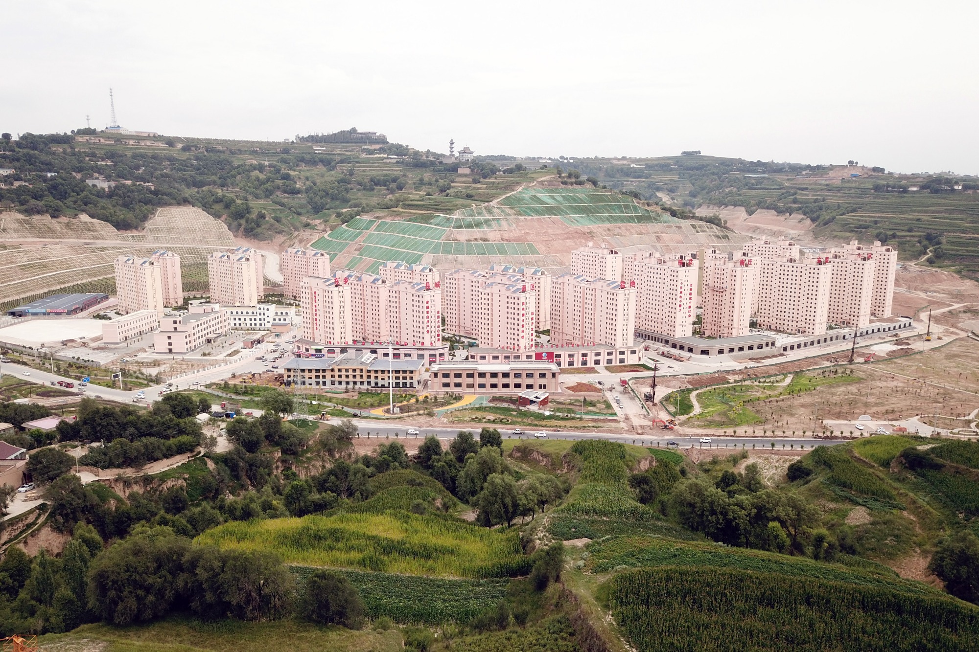 8月3日拍摄的东乡县县城南区易地扶贫搬迁安置小区(无人机照片)。新华社记者 范培珅 摄