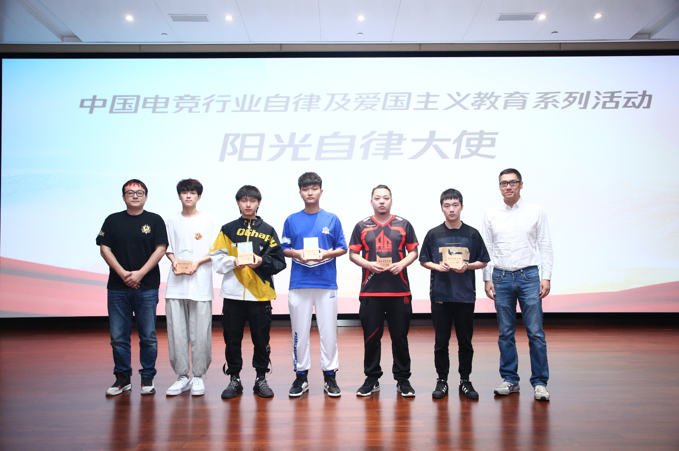 KPL联盟和中娱协共同任命了五位联盟优秀的选手作为KPL联盟的阳光自律大使,分别是:WB.TS.阿豆(蒋涛),重庆QGhappy.Fly(彭云飞),武汉eStarPro.Cat(陈正正),成都AG超玩会.六点六(徐怡然),RNGM.虔诚(刘学煌)。