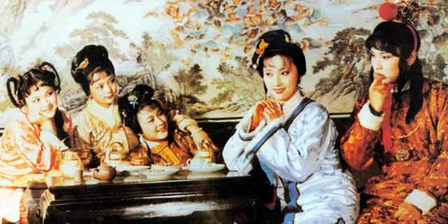 据考证来说,他们玩的是“女儿令”,属于诗词曲文类酒令的一种。此类酒令多为文人所行的雅令,和诗词、戏曲、成语、曲故、文章等相关,包括作诗令、回环令、故事令等等,“女儿令”是“说诗句”中的一种。