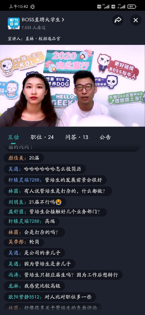 这是此次直播所招岗位中,薪资开得最高、学历要求最高的岗位。“羡慕,工资很高”“听起来就觉得高端”……在这场近万人观看的“带岗”直播中,用户纷纷留言感慨。