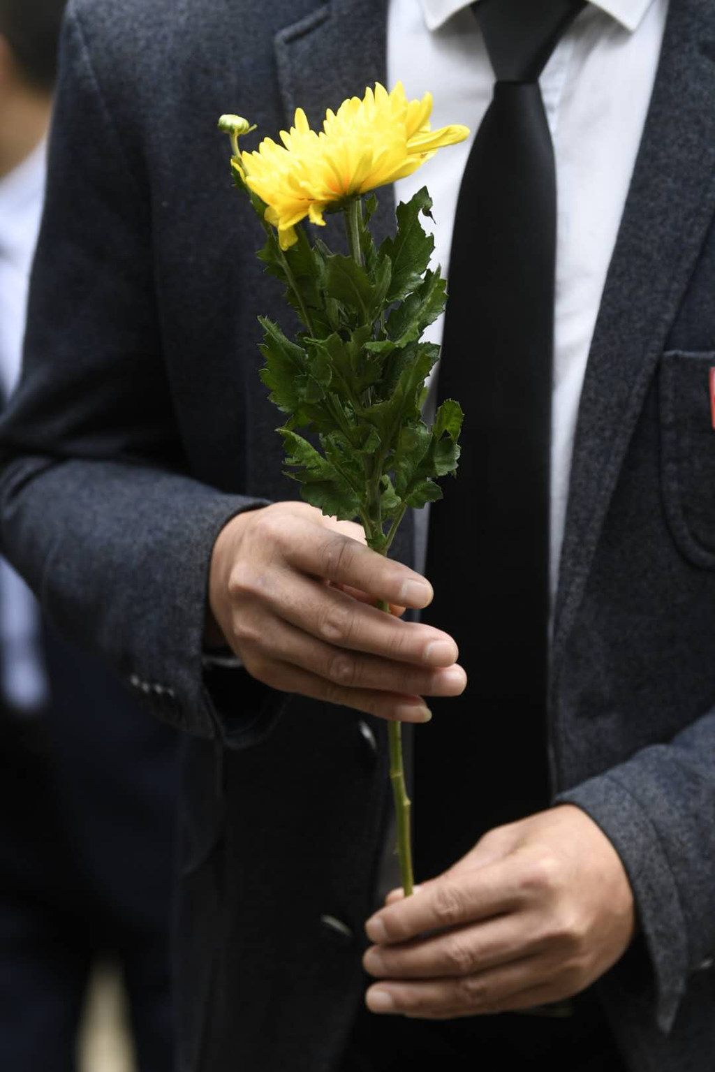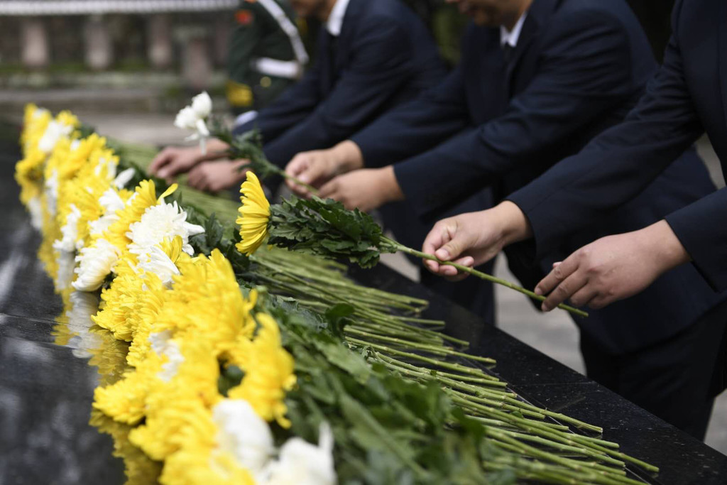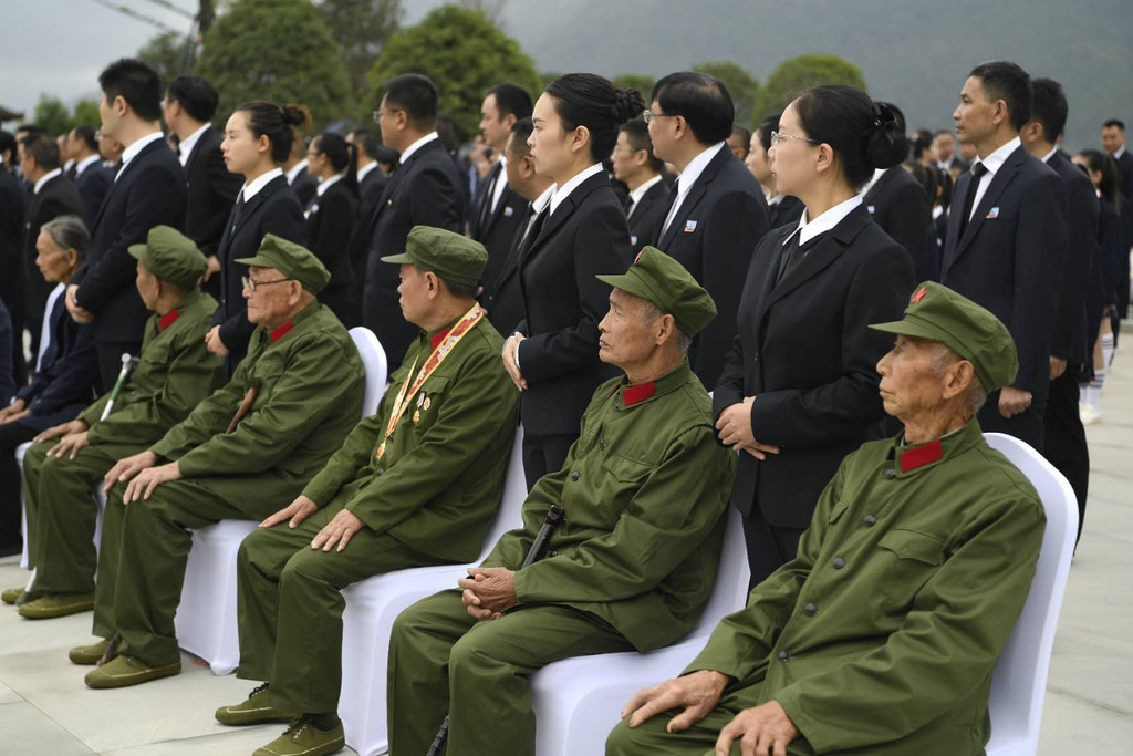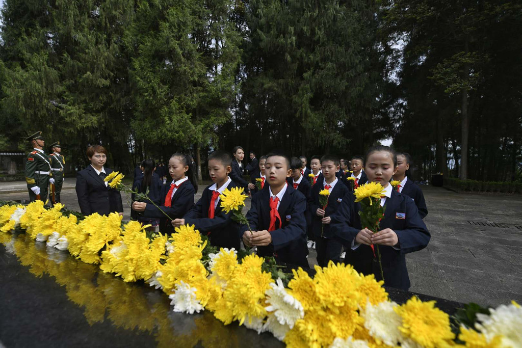 仪式上,各界人士齐唱中华人民共和国国歌,面朝主题雕塑深切默哀。人们缓步经过千秋大道,登上341节台阶,依次瞻仰英勇烈士纪念碑、红军烈士集墓,献上鲜花和祝福,表达心中无限哀思。