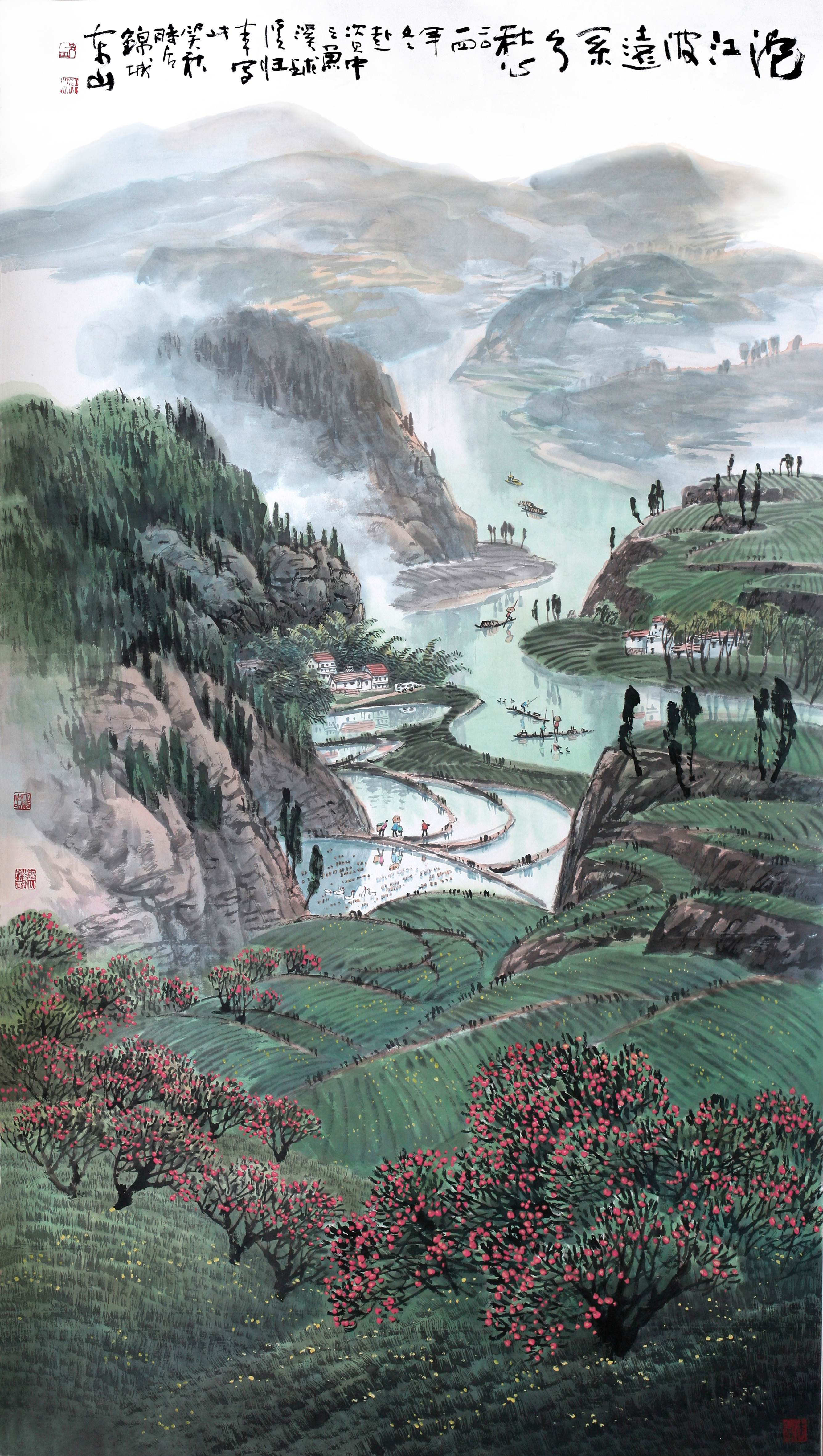 不久前,四川省文联也主办了一场名为“同饮一江水,共诉巴蜀情”画展,邱笑秋为此专门创作了一幅六尺大画——《沱江波远系乡愁》。沱江在泸州与长江汇合,然后又流到了重庆。“说实在的,巴蜀文化很特殊,川渝两地的确缘分很深,我们都是共饮一江水。”邱笑秋感慨地说。