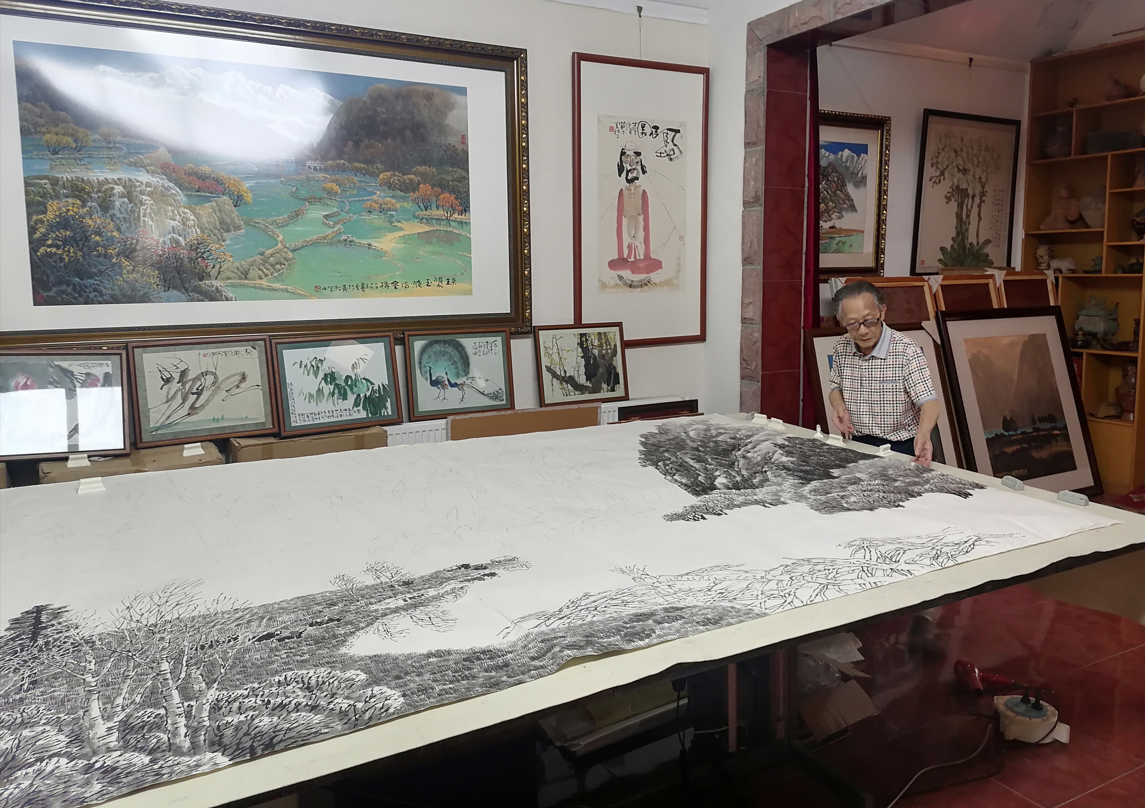 这位85岁的画家曾10多次进藏创作写生,他的作品陈列于人民大会堂、天安门城楼、中南海及八一大楼等重要场所,除了被中国美术馆等收藏,他还曾远赴纽约、圣彼得堡、维也纳办展,将中国的彩墨艺术推向全球。