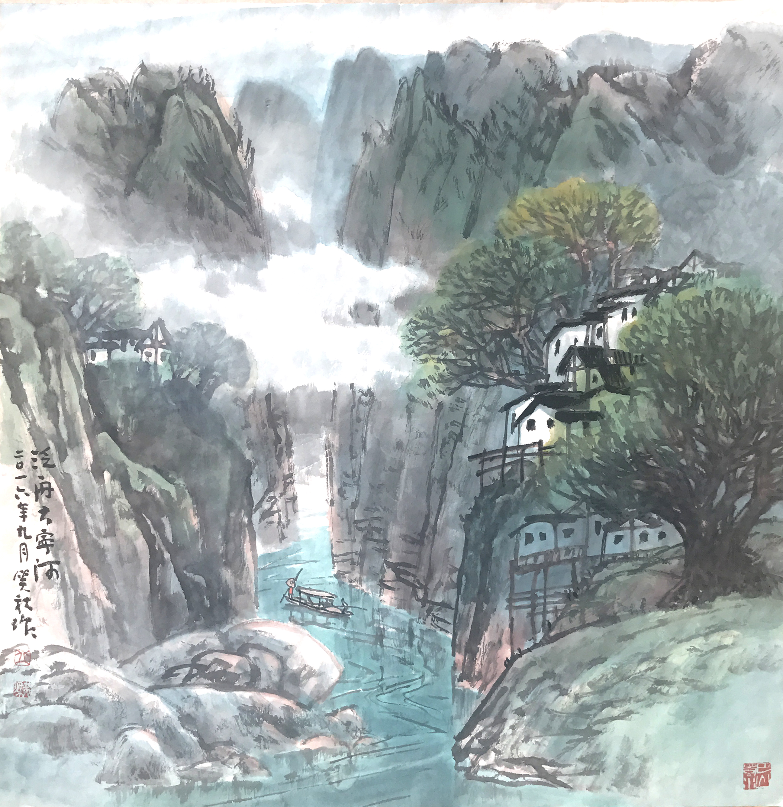 在众多邱笑秋的山水画经典中,不少都是关于重庆的山山水水。今年文史馆举行了一次和重庆的联展,邱笑秋交了一幅作品,他画了一幅重庆南华蓥古镇。