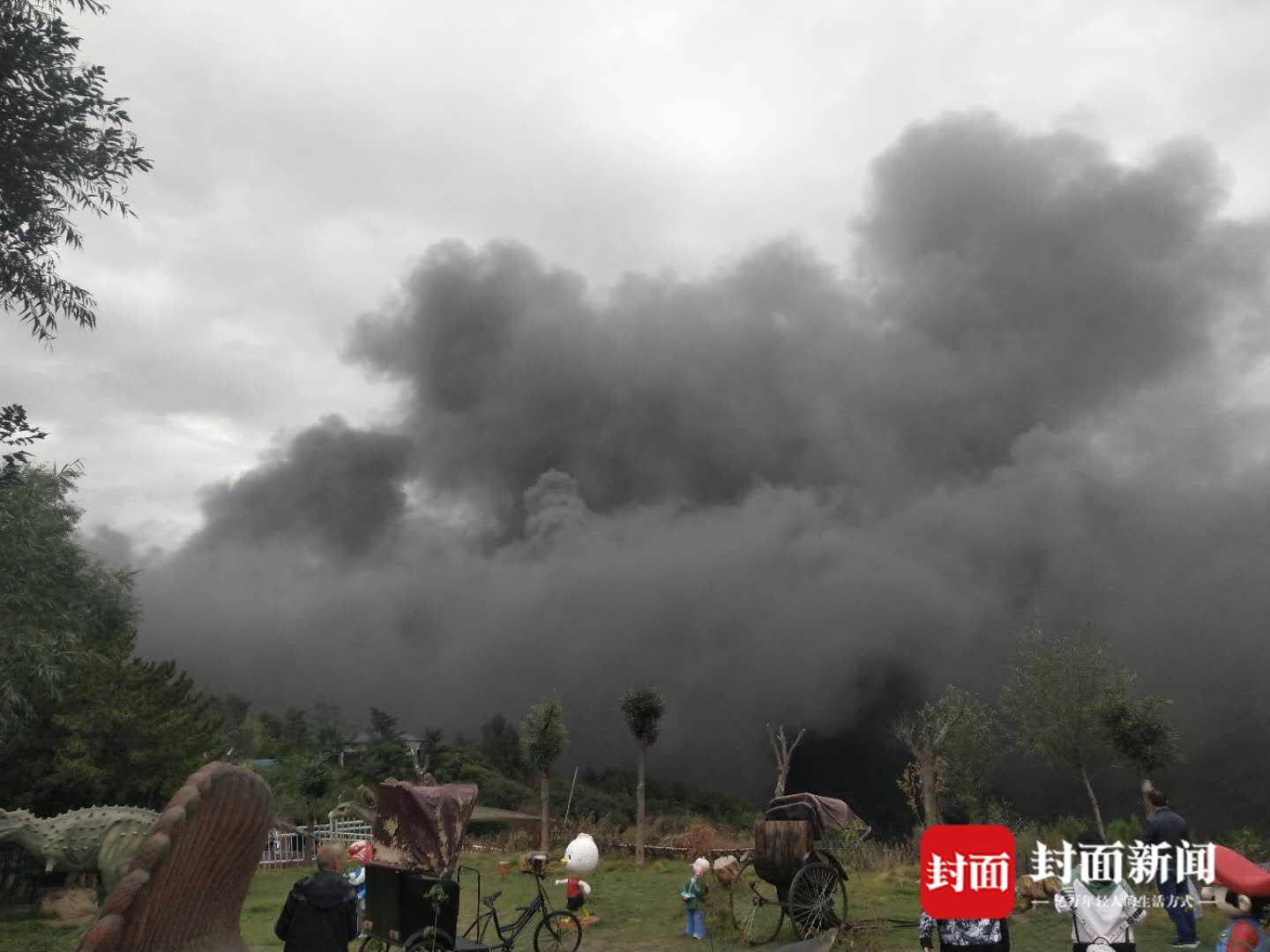 目击者:事发时浓烟弥漫 跟着人群逃离现场