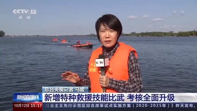 总台央视记者 马媛:这里是四川省简阳市的三岔湖湖区,目前,四川省森林消防总队特勤大队的消防员正在这里开展水域救援科目的演练,现在水面上正在进行的就是第一个科目舟艇操作,这一系列的训练就是为了迎接即将在全国开展的森林消防系统的特种救援专业技能比武。