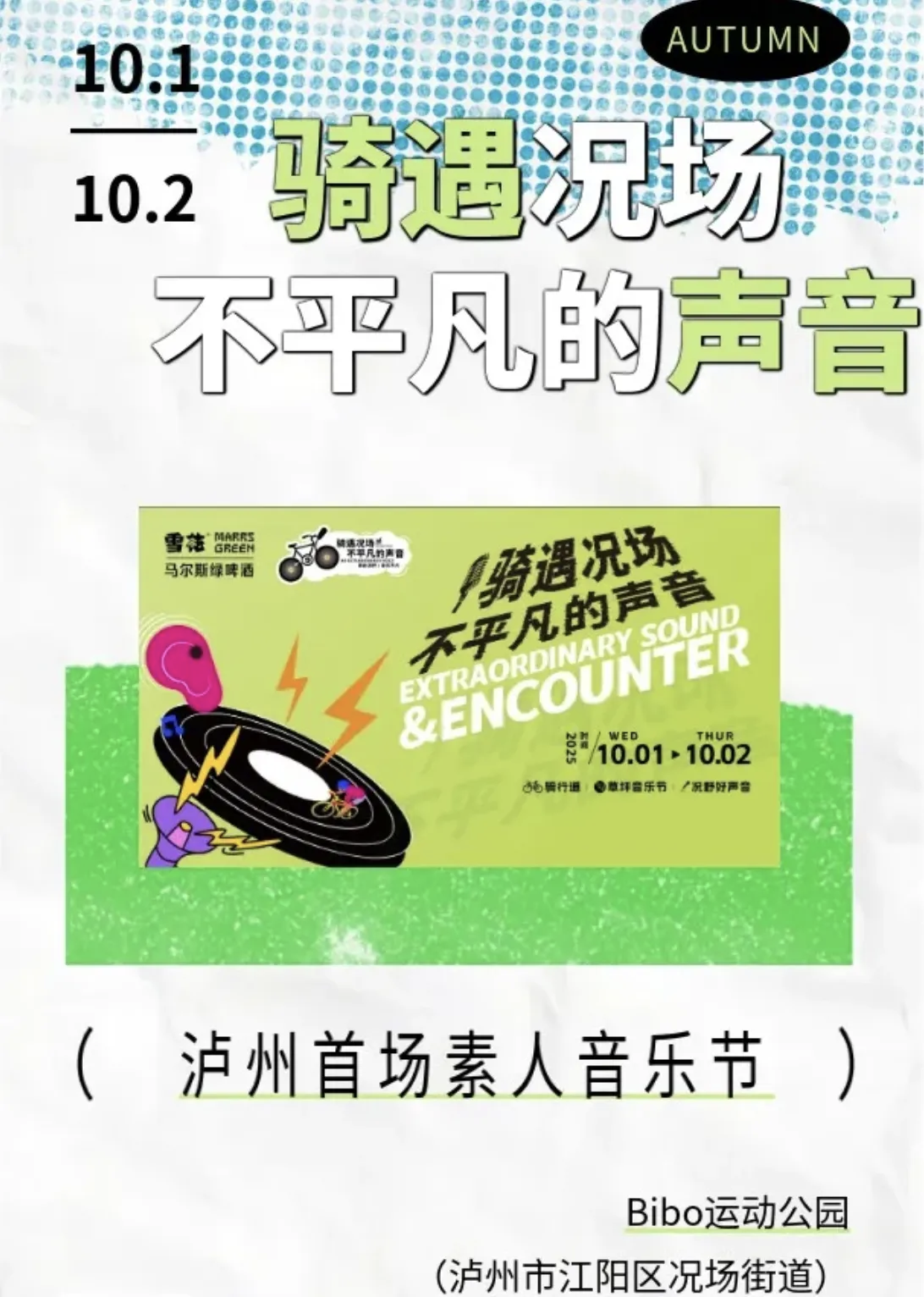 不只主流舞台,素人歌手也有闪光时刻。10月1日至2日,江阳区Bibo2.0运动公园将举办“素人音乐节”,让平凡人唱出不平凡;同期,钟鼓楼·江阳里推出“国漫嘉年华+民谣之夜”,露天音乐、动漫、啤酒节碰撞年轻力。