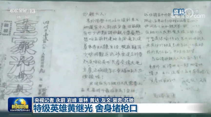 ——到达朝鲜战场一年多后,黄继光给母亲写下家书