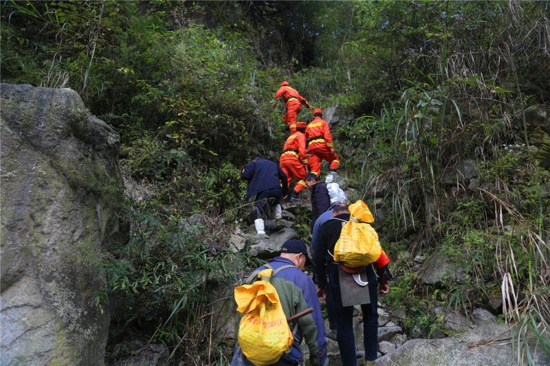“我宣布,联合巡查行动正式开始!”20日早上,随着带队领导巡护号令的发出,工作人员踏上了二郎庙--头道河--伽担湾的巡护路线,这条巡护路线两边是峭壁、中间是奔腾的河流,很多时候都是临时搭建两根木头宽的“路”,贴壁而过。由于出发前几天下雨,河水上涨,原本踩着石头可以过河,现在只能踩着冰冷的河水过河。