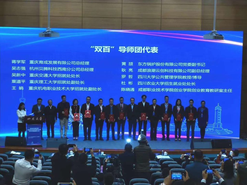 10月27日,在成渝地区双城经济圈高校就业创业协同发展行动方案签约仪式上,成渝地区双城经济圈高校就业创业指导“双百”导师团的10位代表上台接受了聘书。