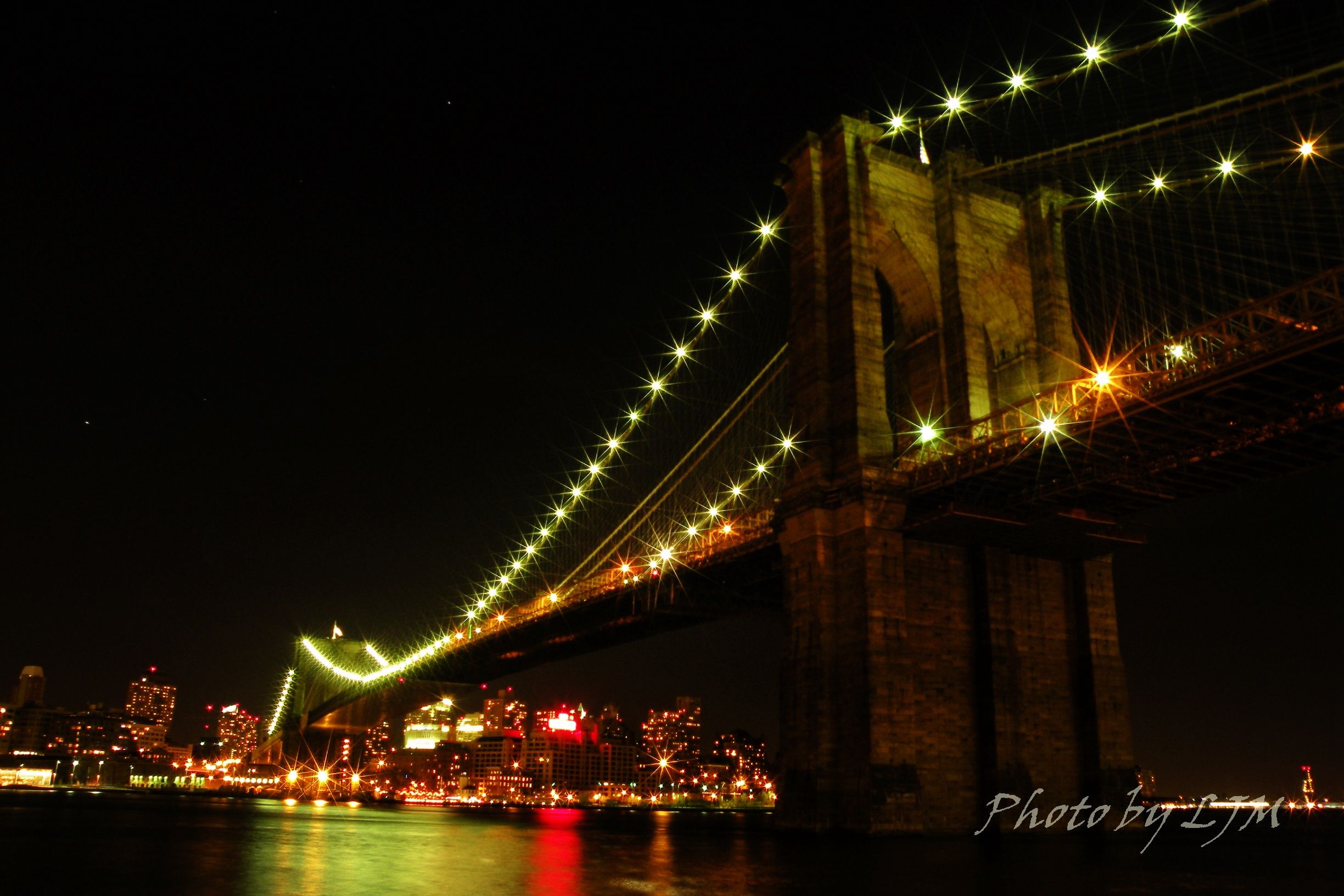夜晚的布鲁克林大桥——在Gossip Girl每每出现的一个标志性建筑,连接着曼哈顿岛与布鲁克林区,也点亮了夜晚的纽约。