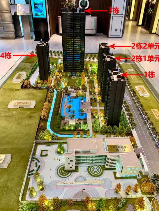 其中1号楼、2号楼(1、2单元)、4号楼均为155㎡套四双卫,3号楼为200㎡套四三卫,均价3.3万元/㎡。