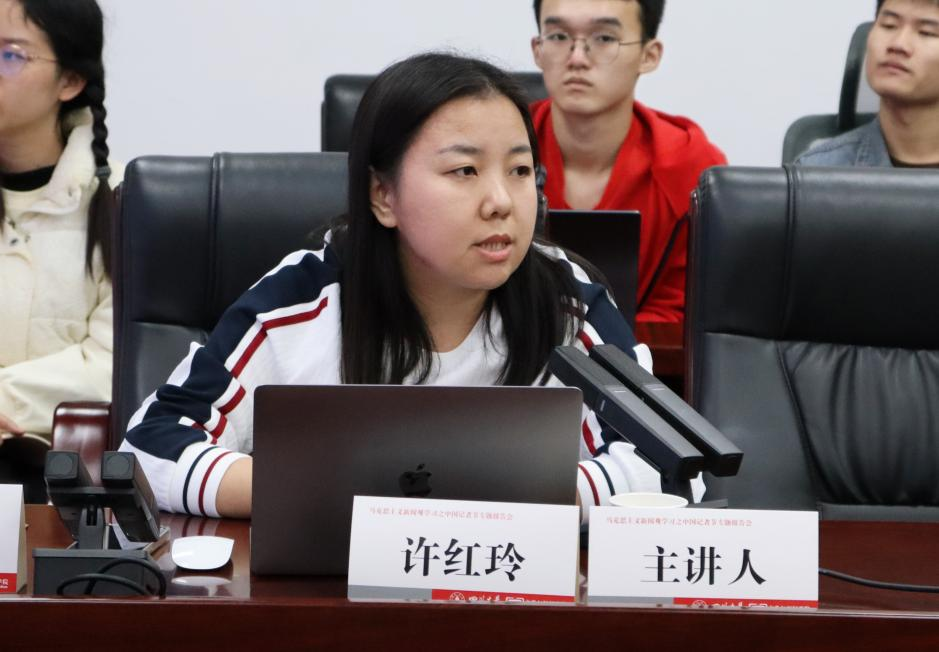 11月3日下午,四川大学文学与新闻学院举办了马克思主义新闻观学习之中国记者节专题报告会,文新学院2022级传播学博士研究生许红玲作题为“重访‘鲁忠才长征记’之路——建构马克思主义新闻观教育的‘红色新闻现场’”的分享。