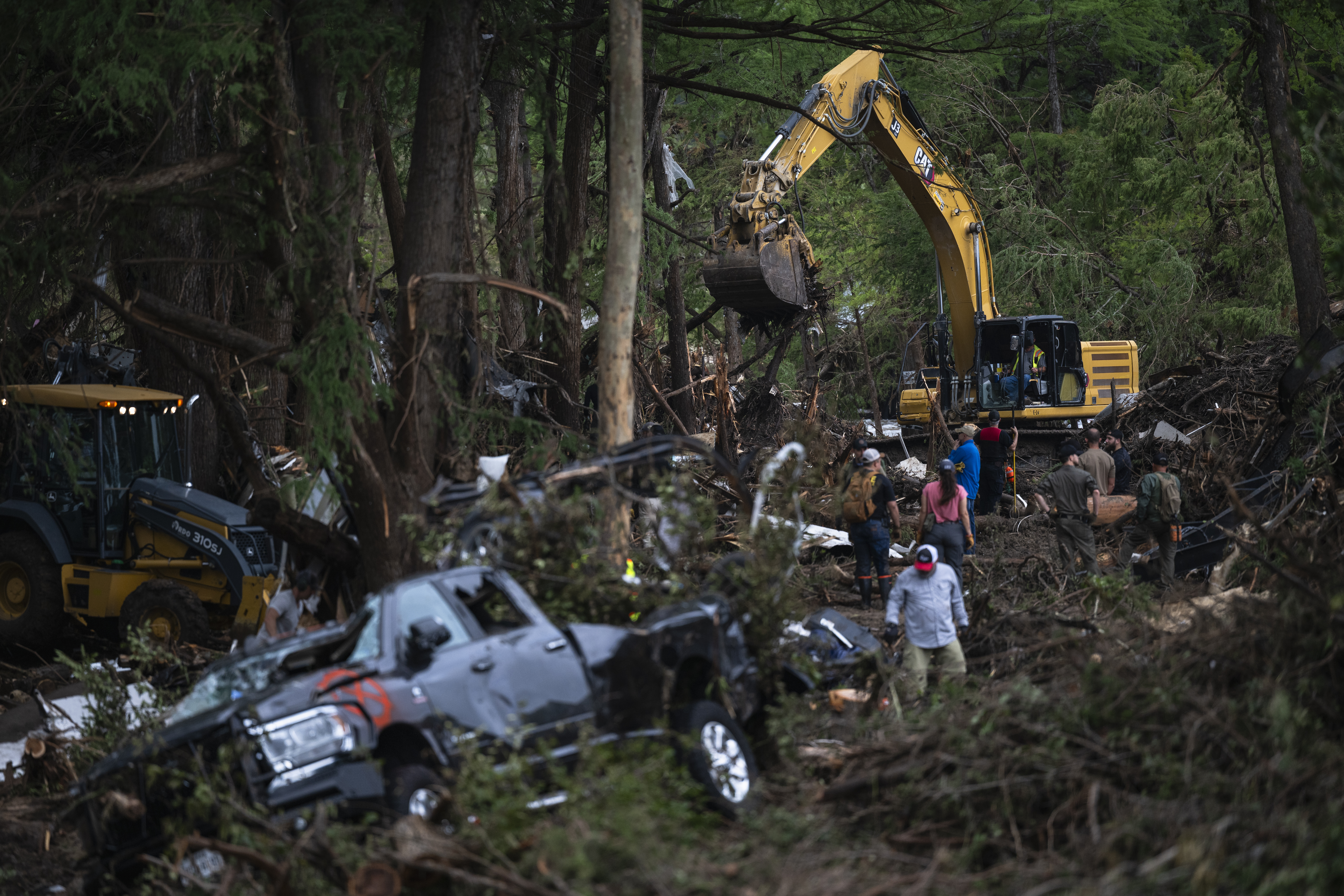 7月6日,在美国得克萨斯州亨特,志愿者在受灾地区寻找失踪人员。新华社/美联