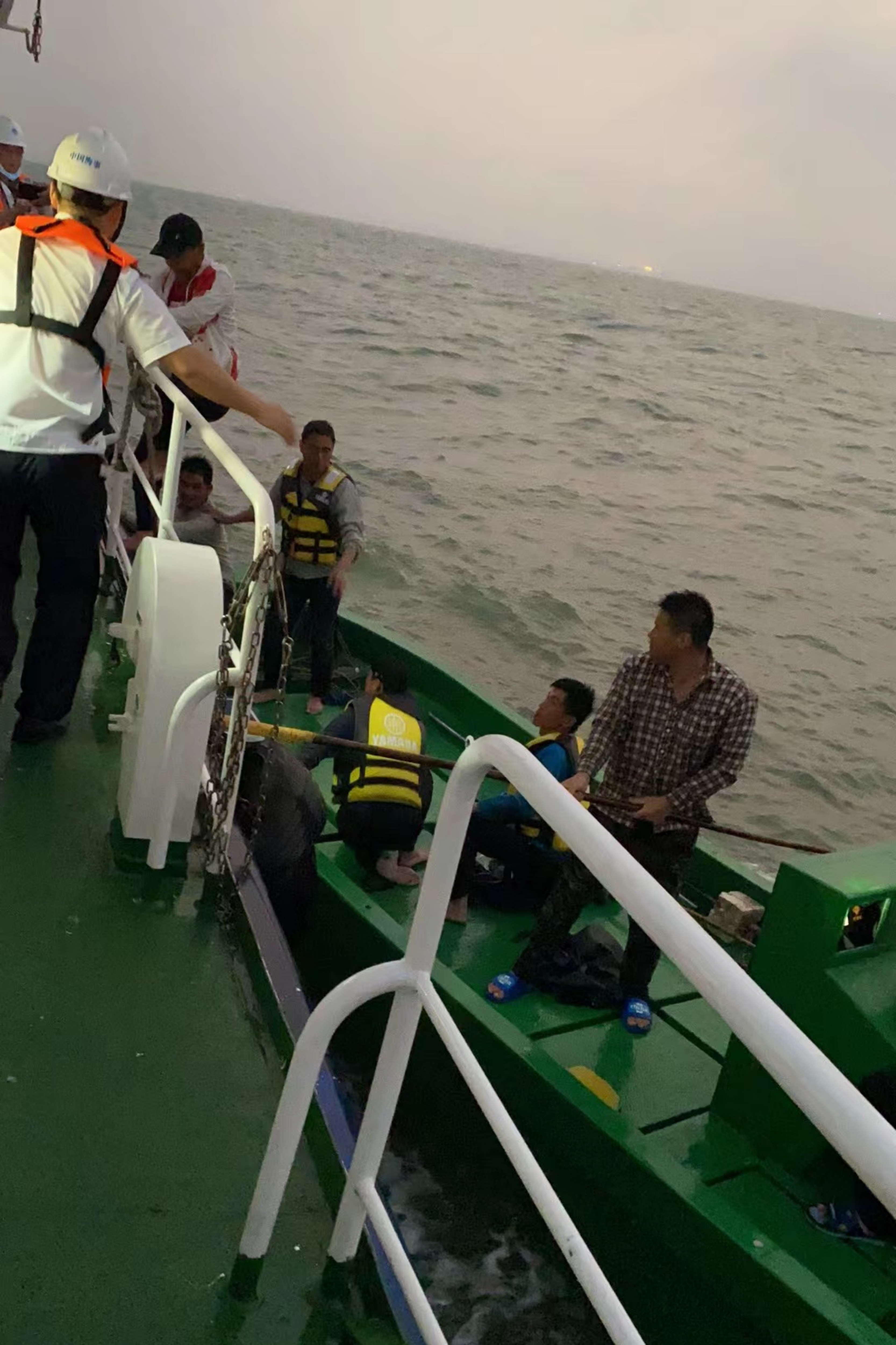 18时25分,东海岛海事处接到搜救指令后,立即派出“海巡09047”轮赶赴事发水域,全力开展紧急救援行动。搜救人员克服涌浪大、晕船等不利因素,对事发水域进行仔细搜索,搜寻一段时间后,发现遇险人员已经登上另一艘过路小艇。在涌浪的拍打下,小艇左右摇晃、上下起伏,有倾覆危险。“海巡09047”轮迅速向小艇靠近,经过多次尝试,才成功靠上小艇。19时30分许,经过一番努力,4名遇险人员全部转移到海巡船,人员安全。