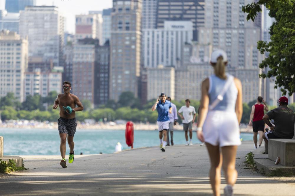 6月17日,人们在美国芝加哥密歇根湖畔慢跑、散步。新华社发(文森特·约翰逊摄)