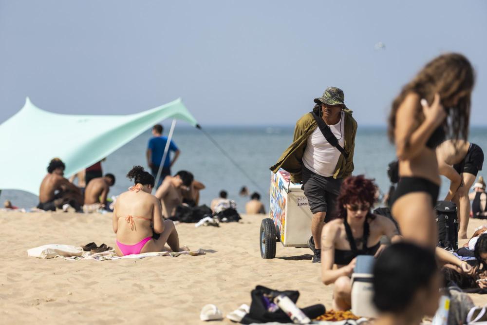 6月17日,在美国芝加哥,一名商贩在人群中兜售冷饮。新华社发(文森特·约翰逊摄)