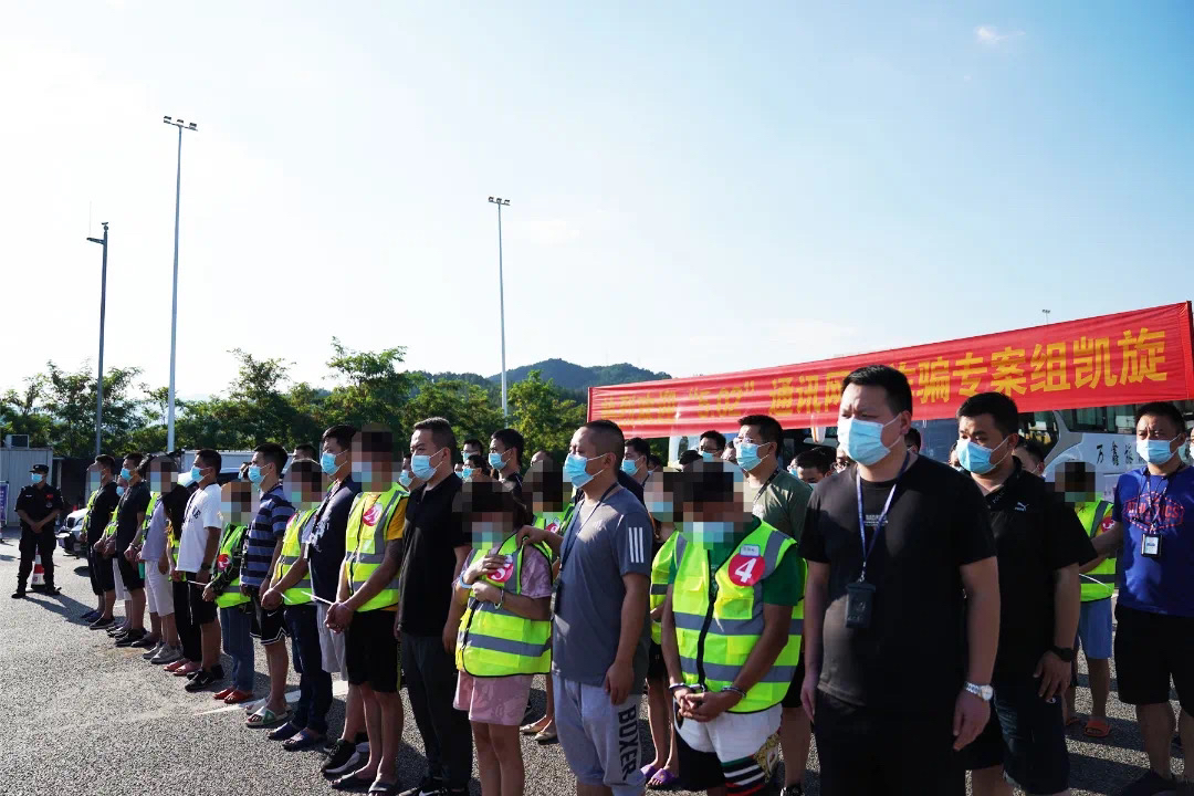 7月3日,四川广元市公安局利州区分局“5.02”特大系列电信诈骗案专案组在福建、海南等地抓获的多名涉嫌电信诈骗犯罪嫌疑人被顺利押解回广元。