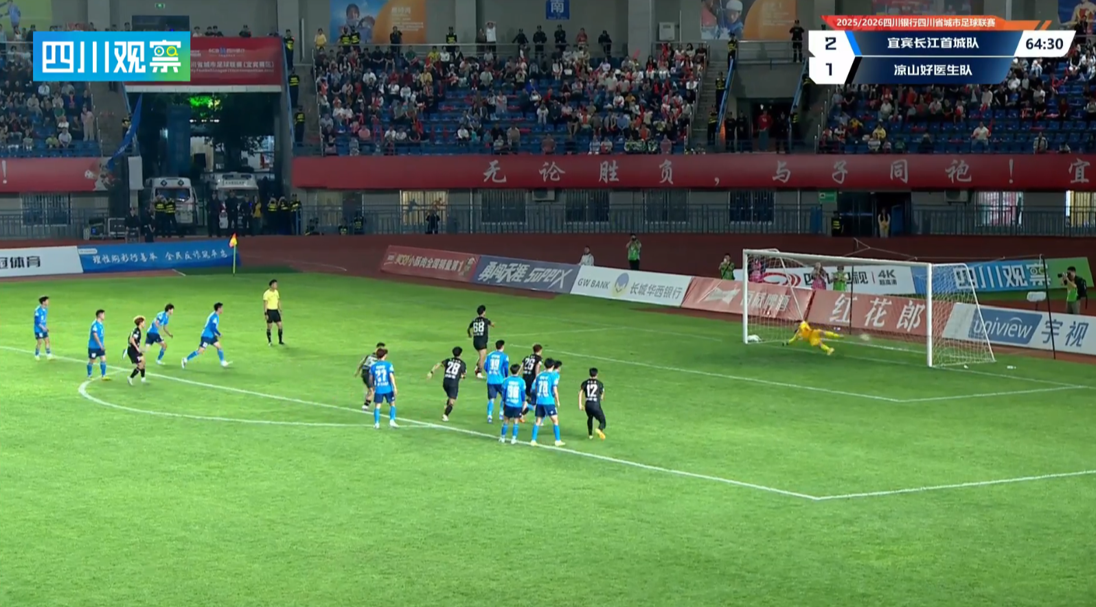 比赛第64分钟 凉山队2:2宜宾队