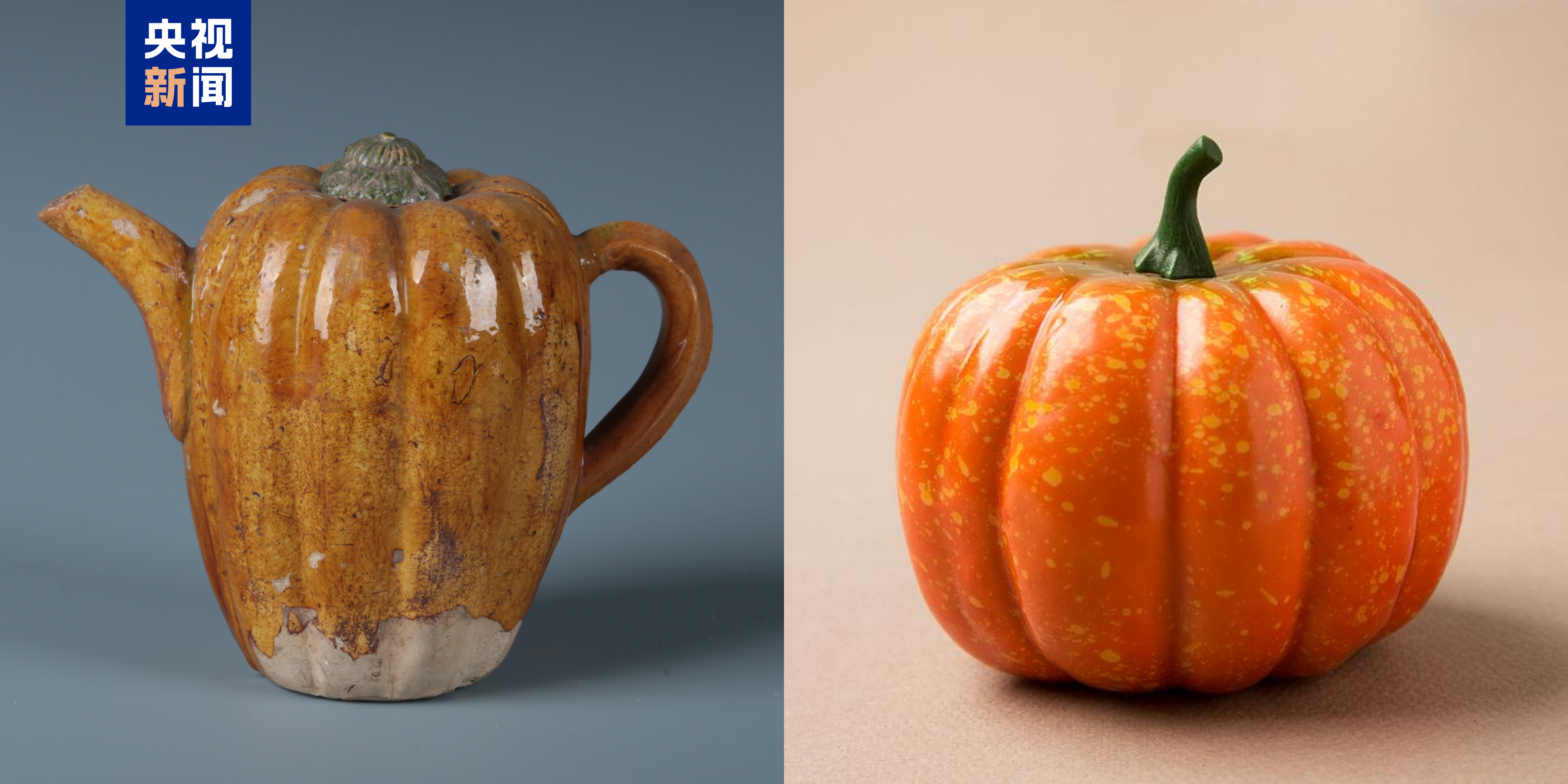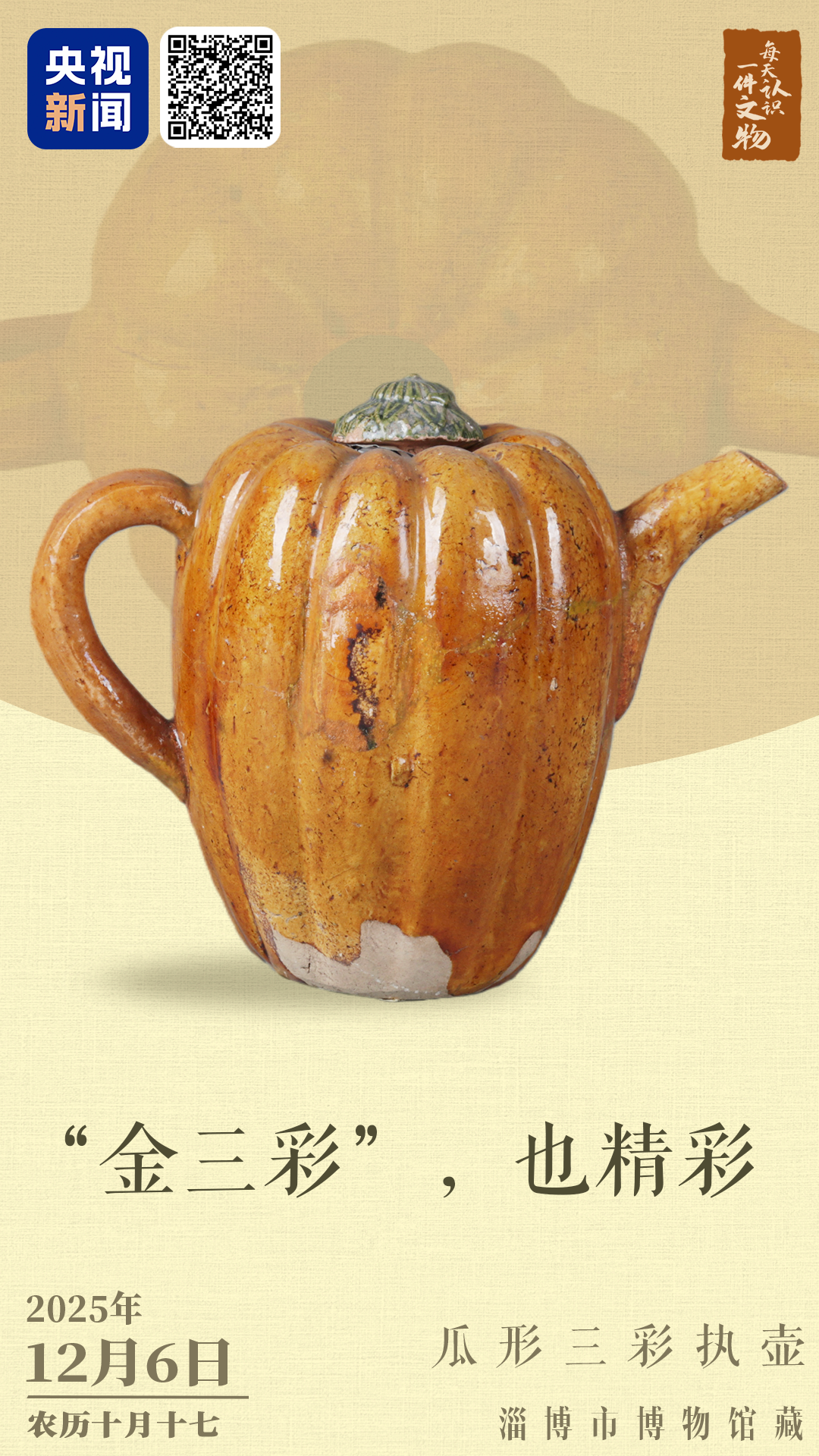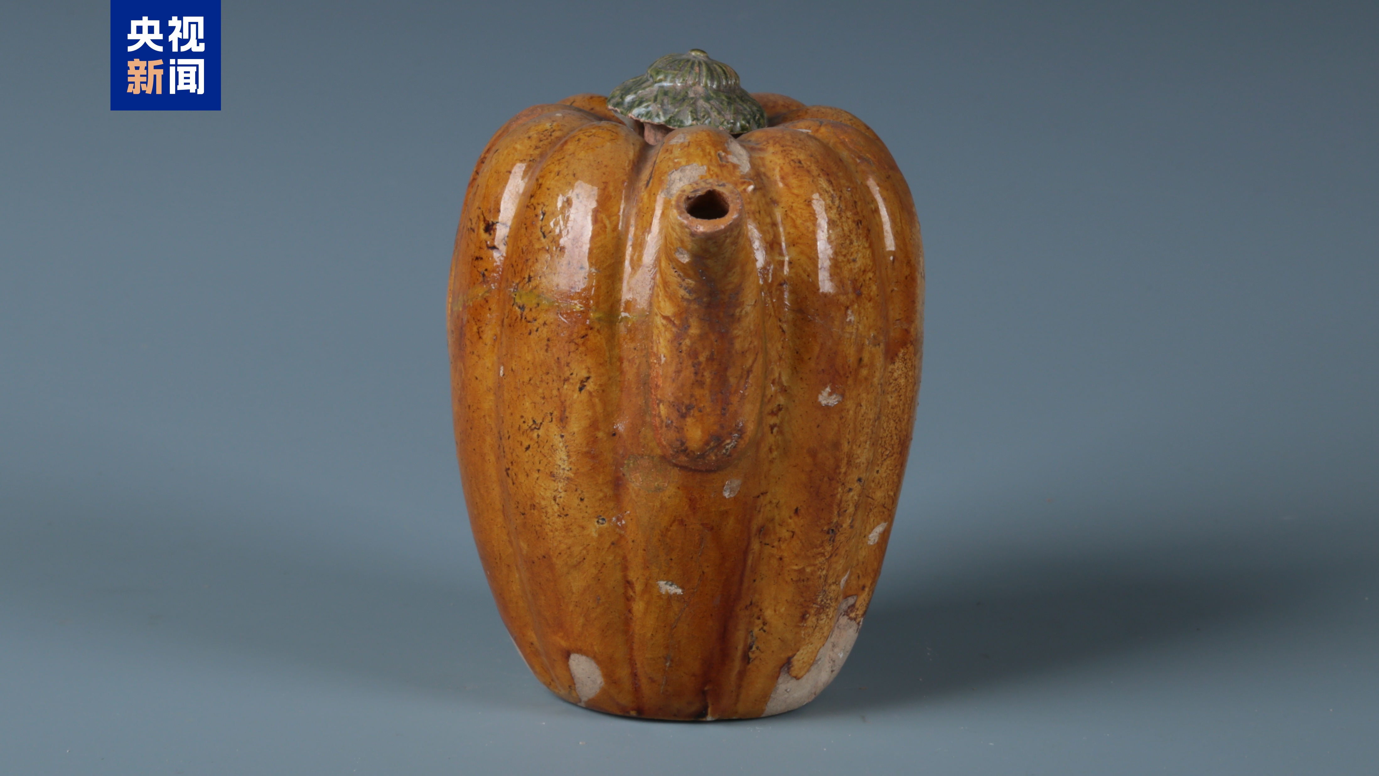 瓜形三彩执壶是一件惟妙惟肖的仿生器