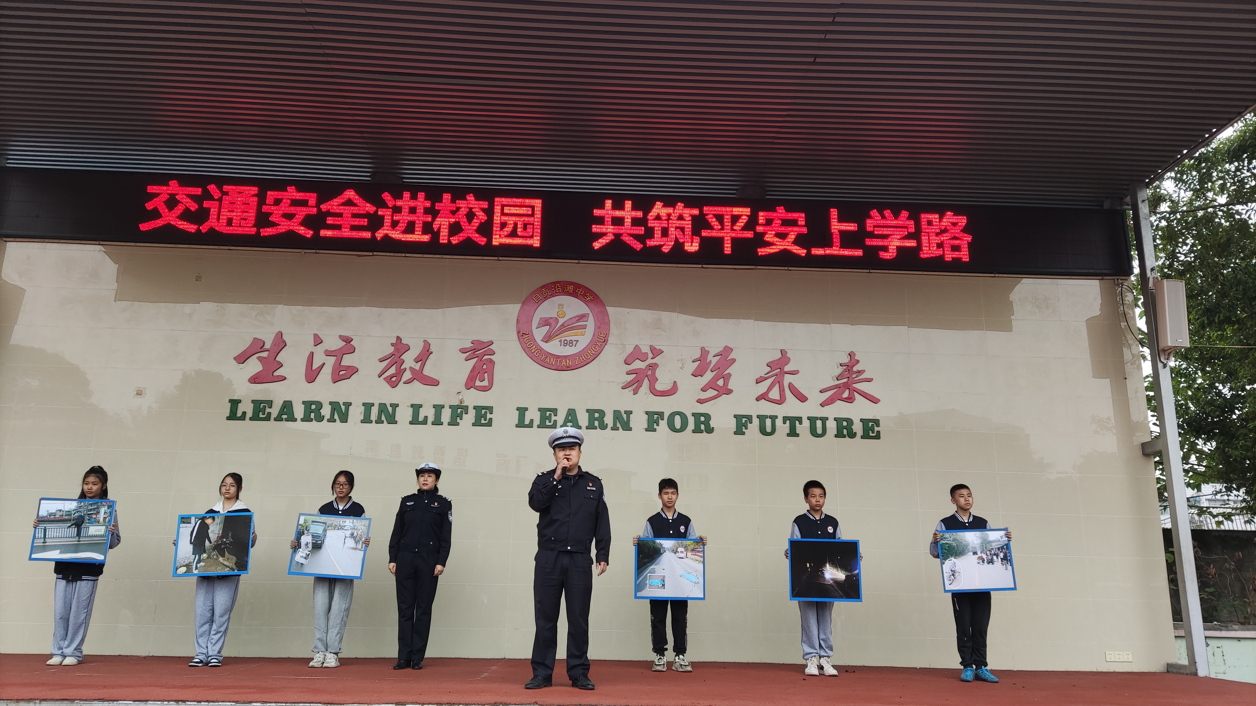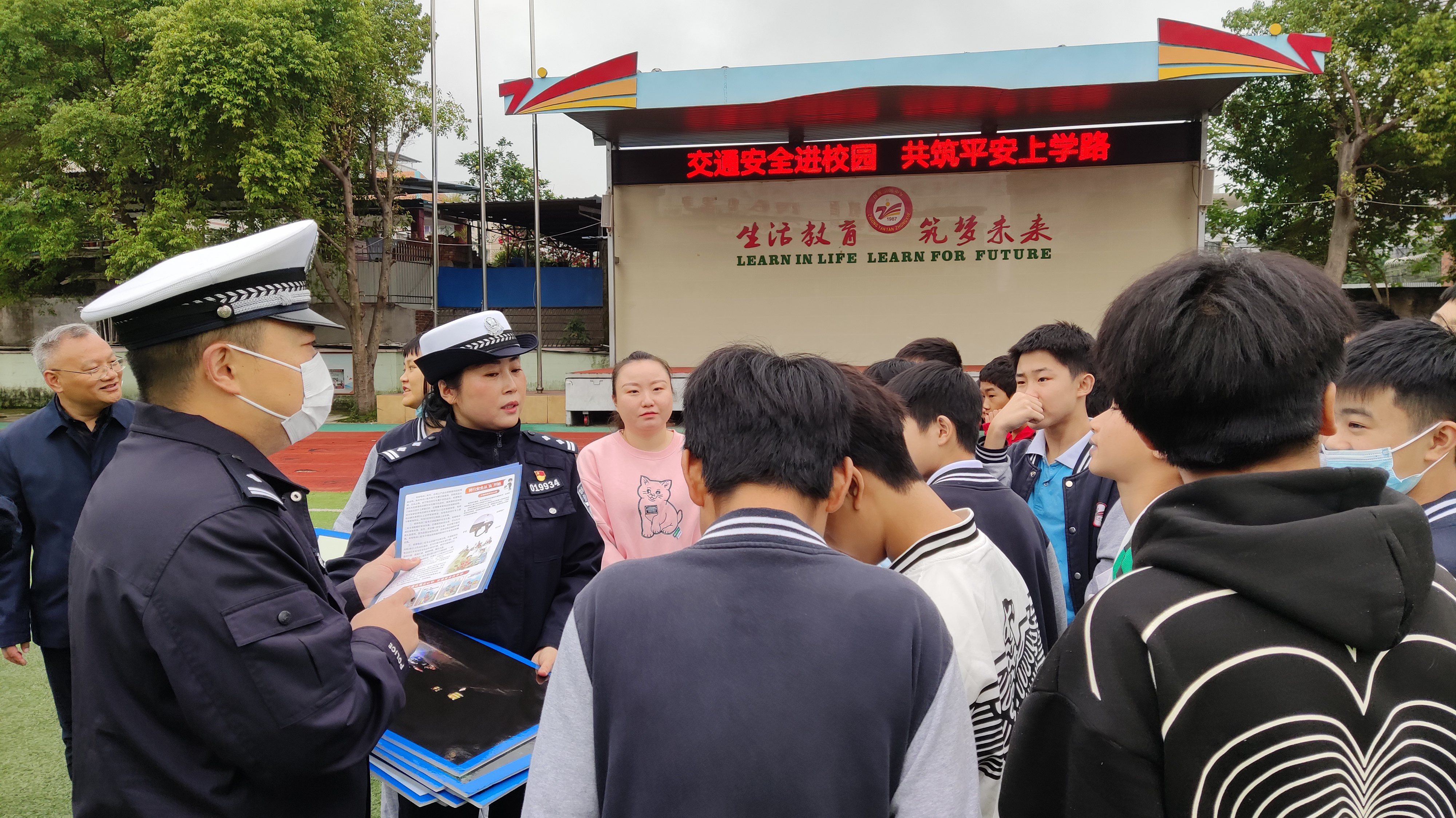 交警陈翠微通过辖区行人交通违法曝光、涉学生典型交通事故案例讲解、中学生搭乘二轮摩托车及电动车注意事项讲解等环节,阐述了交通安全的重要性,提醒同学们守法规知礼让,自觉依法文明参与交通,乘车系好安全带、戴好安全头盔、拒乘超员车等多方面内容。