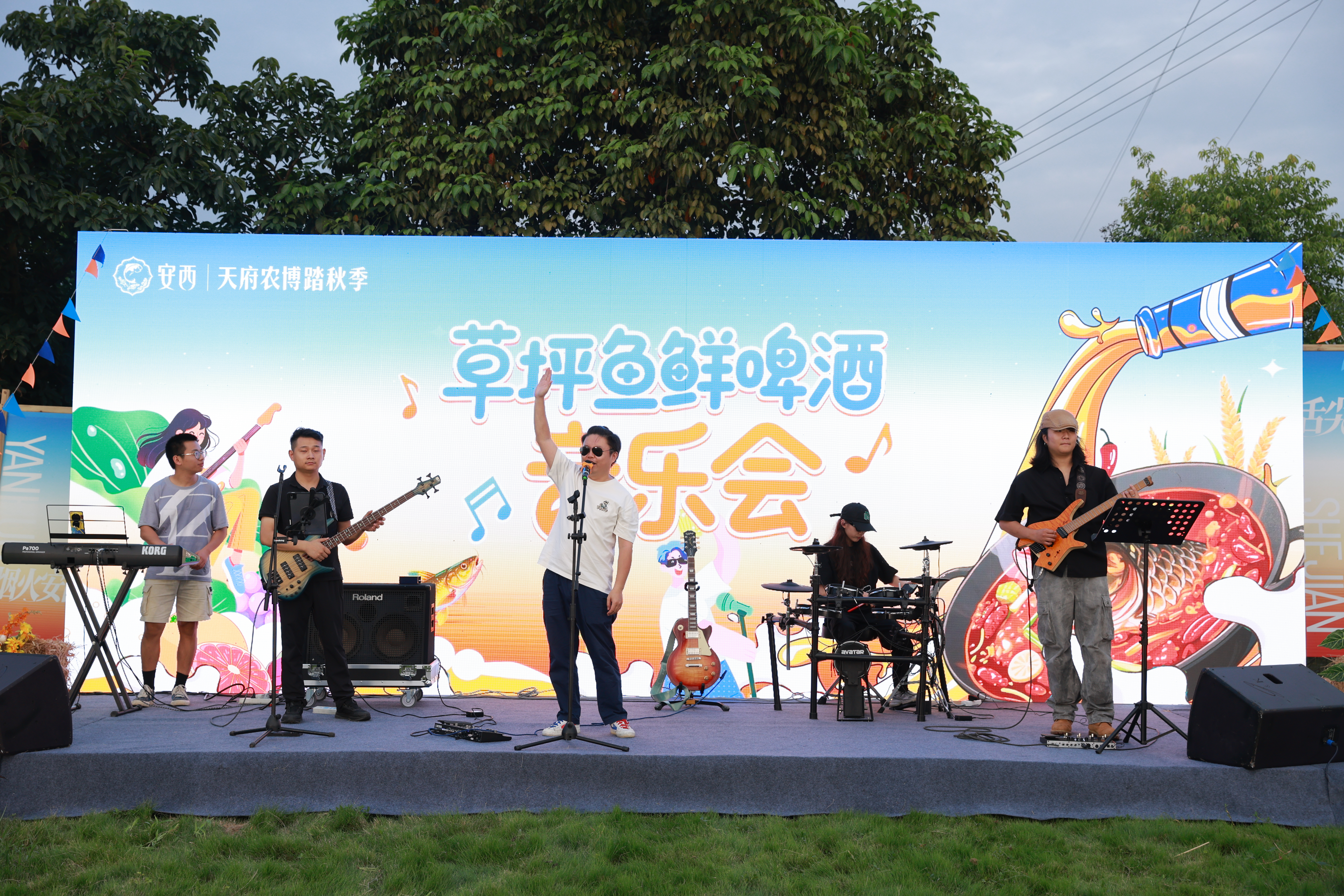 除了核心美食体验,活动现场还设置了秋收市集,汇集新津火龙果、安西葡萄、生态莲藕等特色农产品,搭配草坪音乐会、啤酒挑战赛等互动环节,让市民在品鱼鲜、享福利的同时,沉浸式感受丰收季的热闹氛围。