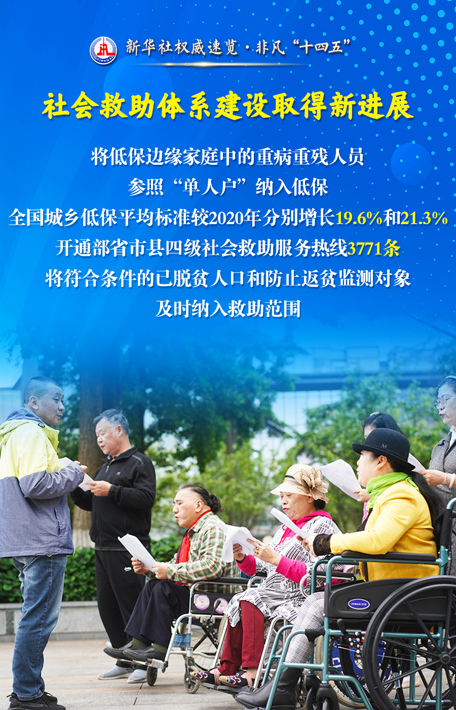 社会救助体系建设取得新的进展,儿童福利保障制度建设取得重大突破,残疾人关爱保障水平明显提升……“十四五”时期,民政部门坚持以人民为中心,更好发挥保民生、防风险、促发展职能作用,各项工作取得了新进展新成就。跟随海报,一起了解。