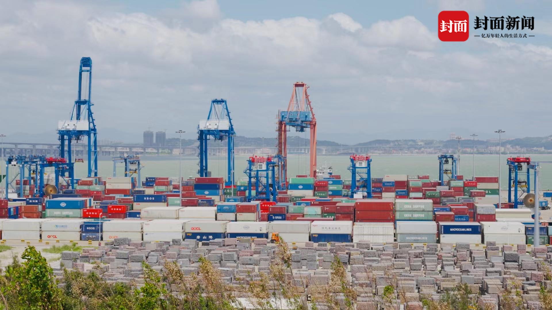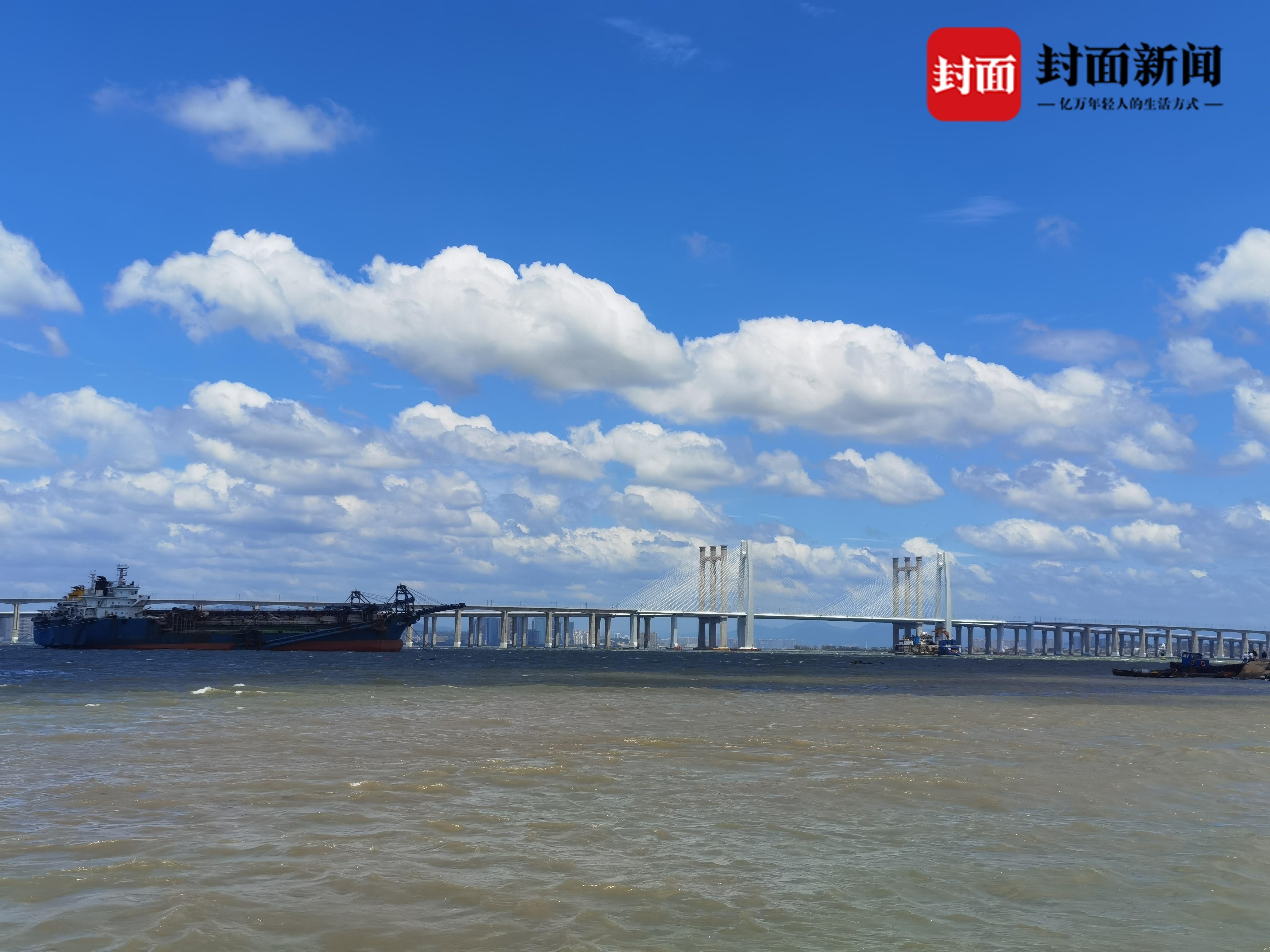 从泉州港石湖作业区,可以眺望远处的福厦高铁。