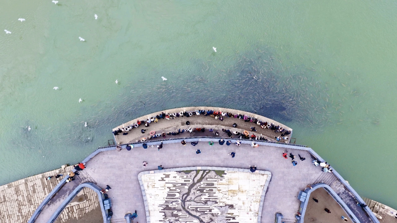 宜宾三江口呈现“红鸥翱翔、鱼群畅游”美丽画卷。(游天木 摄)